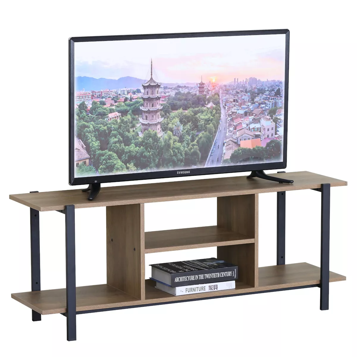 Έπιπλο Τηλεόρασης ArteLibre PENWYN Καφέ/Μαύρο Μοριοσανίδα/Μέταλλο 120x35x46cm