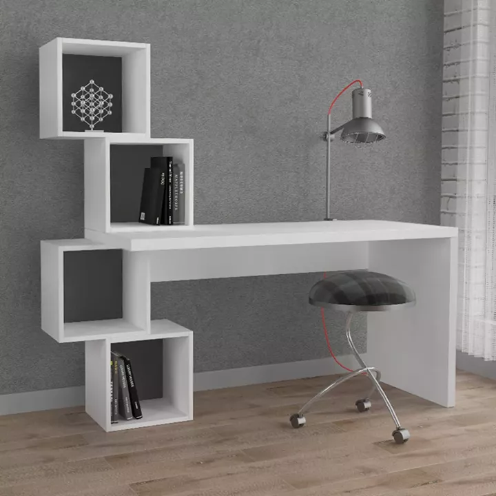 Γραφείο εργασίας Balance Megapap από μελαμίνη χρώμα λευκό 153,5x60x140εκ
