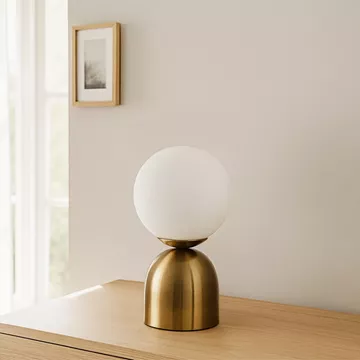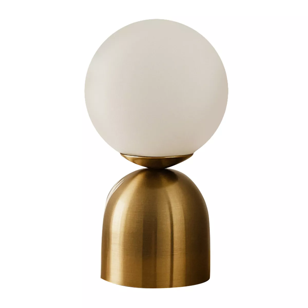 Φωτιστικό επιτραπέζιο Ryka Megapap E14 μεταλλικό - γυάλινο χρώμα χρυσό αντικέ - λευκό Ø15x28εκ.
