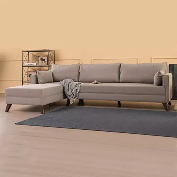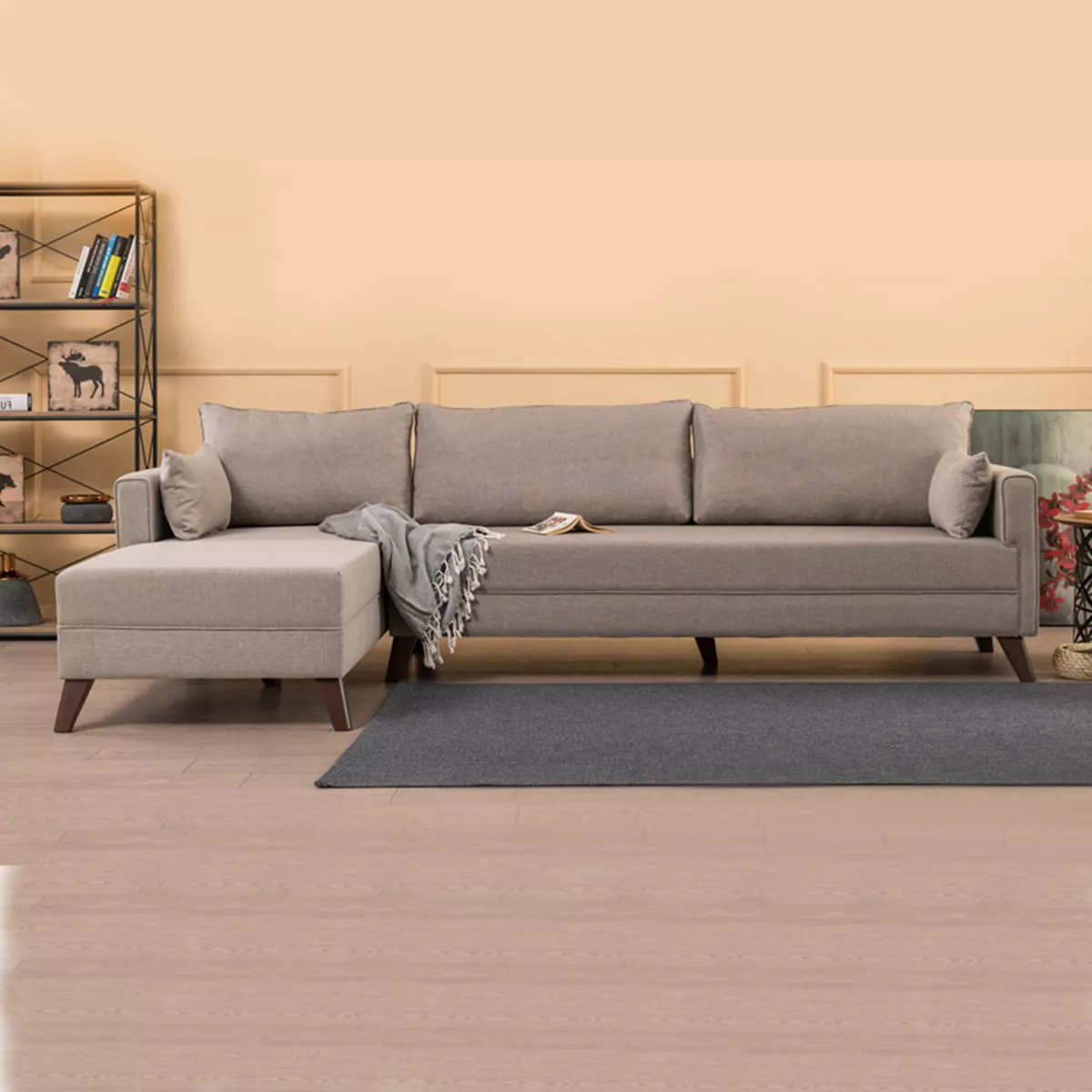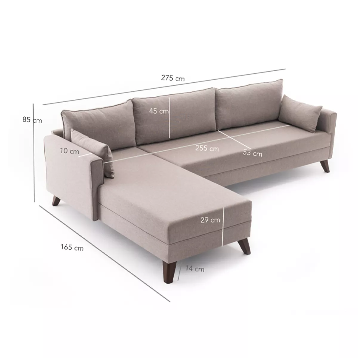Γωνιακός καναπές Bella Megapap αριστερή γωνία υφασμάτινος χρώμα κρεμ 275x165x85εκ.
