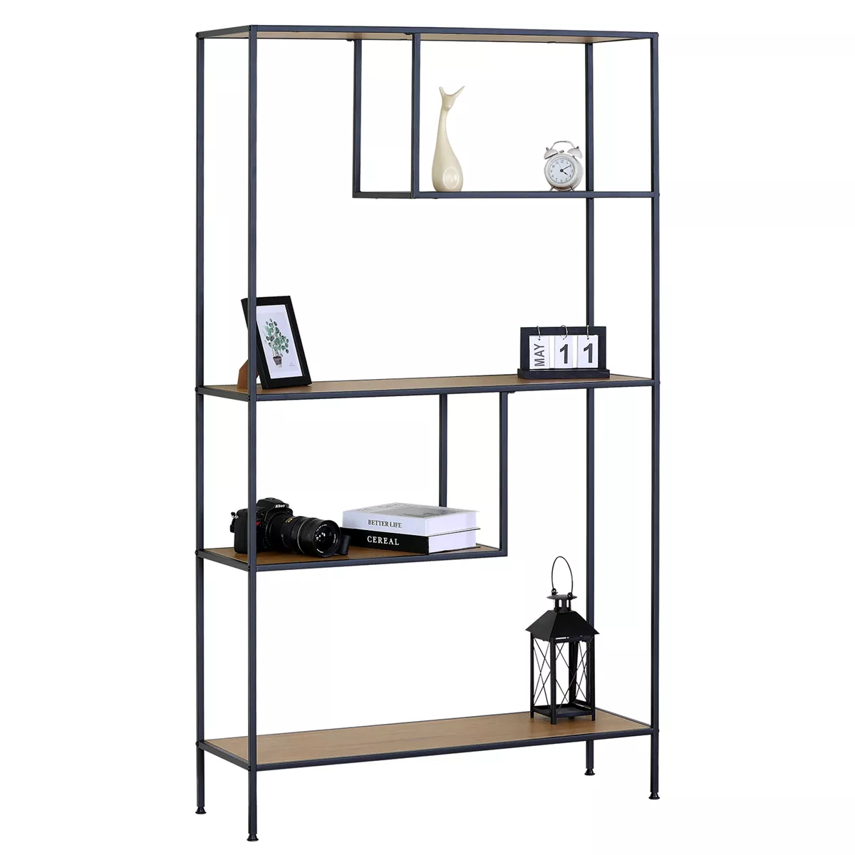 Βιβλιοθήκη ArteLibre YARWOOD Δρυς/Μαύρο Μοριοσανίδα/Μέταλλο 100x33x178cm