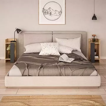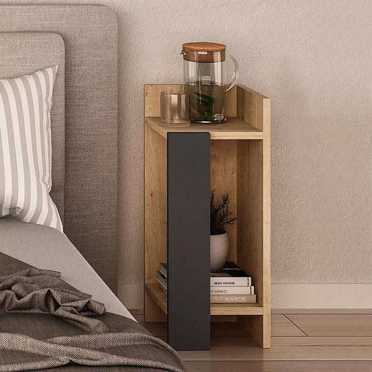 Κομοδίνο μελαμίνης Elos Megapap σετ 2 τεμαχίων χρώμα φυσικό οξιάς - ανθρακί 25x27x60εκ.
