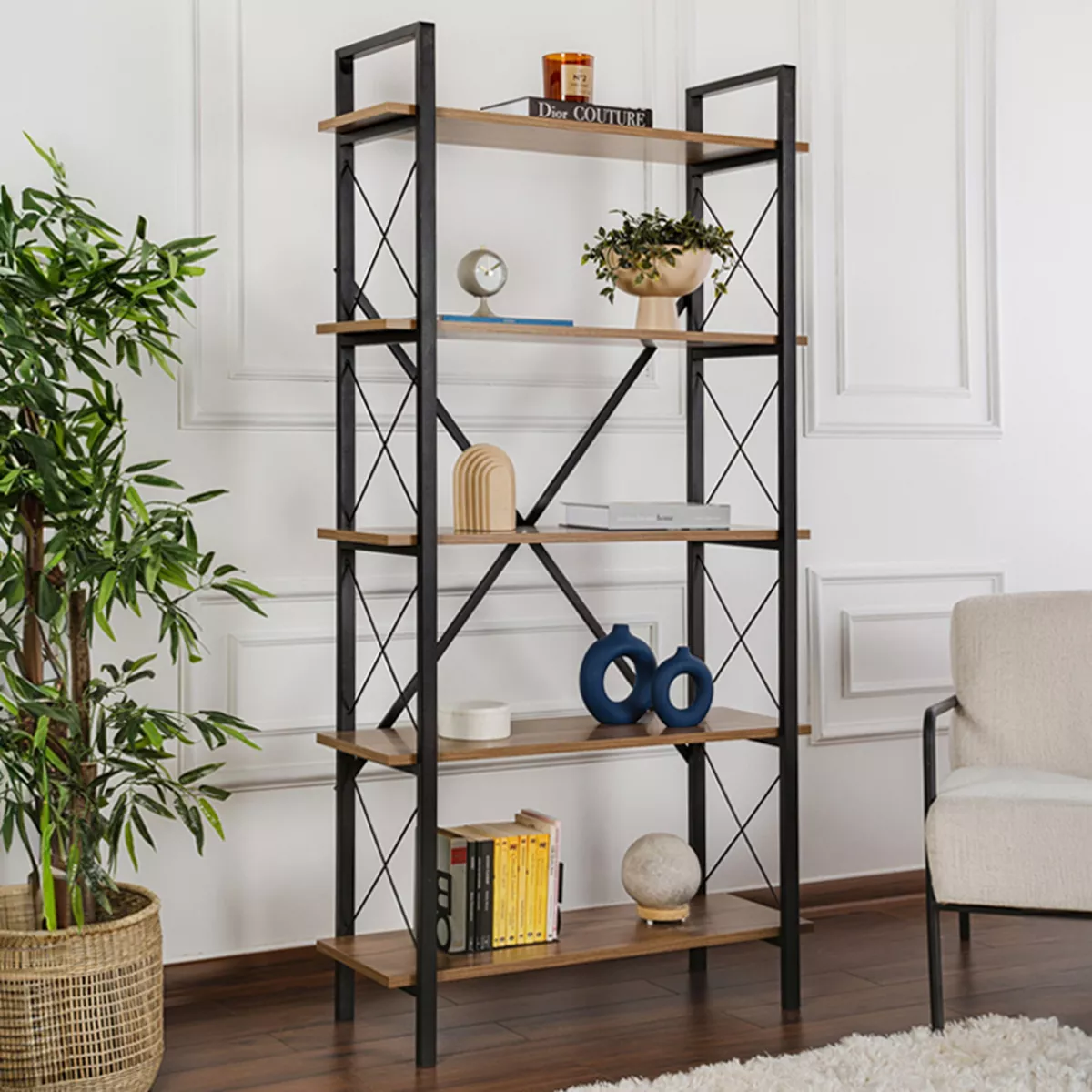 Βιβλιοθήκη Elysian Megapap χρώμα καρυδί - μαύρο 90x33,5x180εκ.