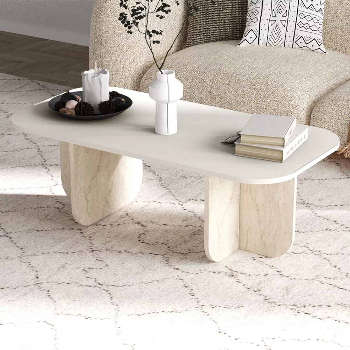 Τραπεζάκι σαλονιού Becaj Megapap χρώμα sandstone - travertine 120x60x41,4εκ.