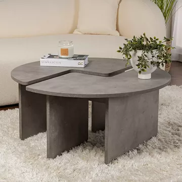 Τραπεζάκι σαλονιού σετ 2 τμχ Moira Megapap χρώμα γκρι σκυροδέματος Ø90x41εκ.