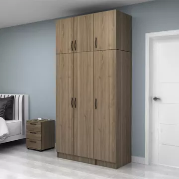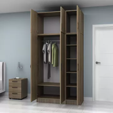 Ντουλάπα ρούχων Vivian Megapap τρίφυλλη με πατάρι χρώμα καρυδί 120x51,8x240εκ.