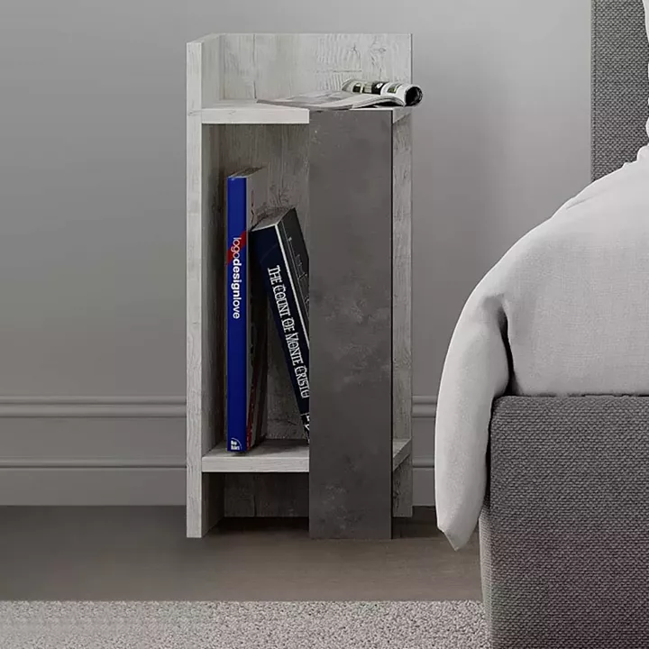 Κομοδίνο μελαμίνης Elos Megapap σετ 2 τεμαχίων χρώμα λευκό αντικέ - γκρι ρετρό 25x27x60εκ.