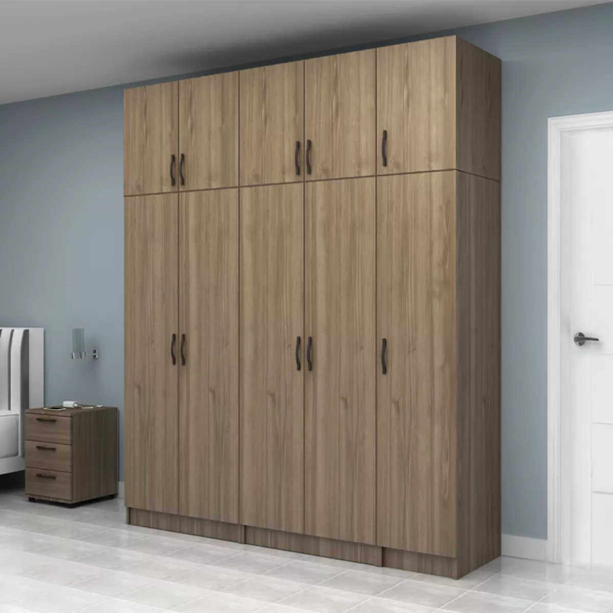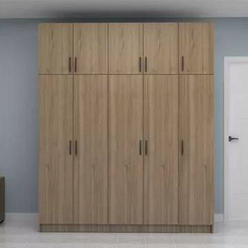 Ντουλάπα ρούχων Vivian Megapap πεντάφυλλη με πατάρι χρώμα καρυδί 200x51,8x240εκ.