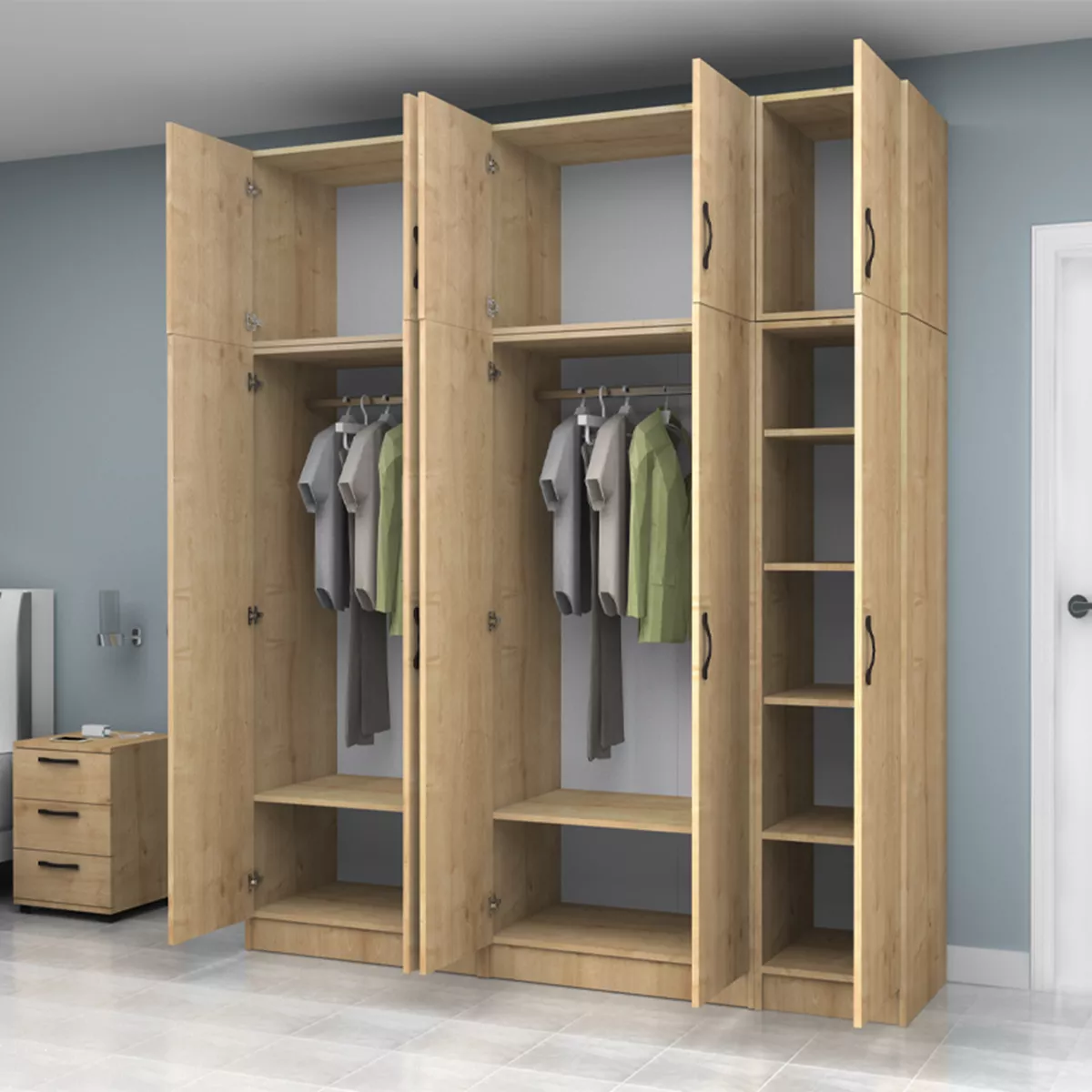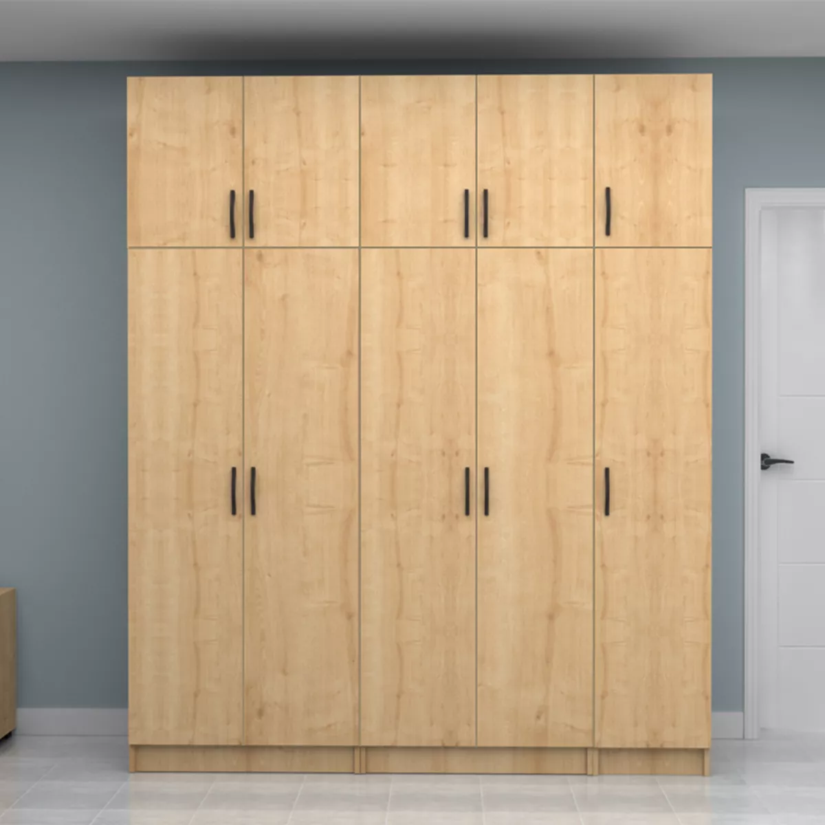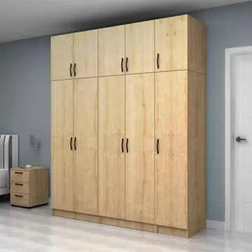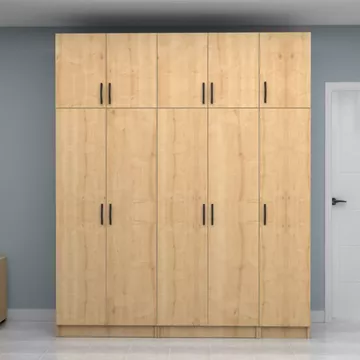 Ντουλάπα ρούχων Vivian Megapap πεντάφυλλη με πατάρι χρώμα φυσικό οξιάς 200x51,8x240εκ.