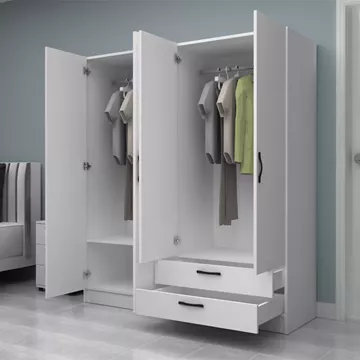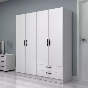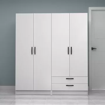 Ντουλάπα ρούχων Vivian Megapap τετράφυλλη με συρτάρια χρώμα λευκό 160x51,8x181εκ.
