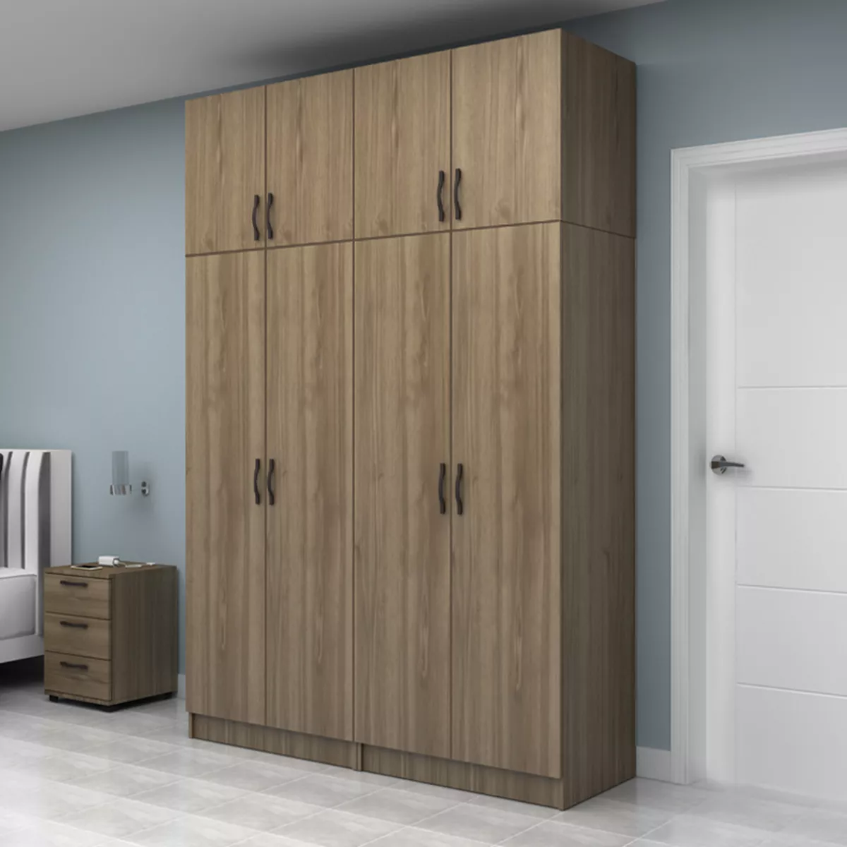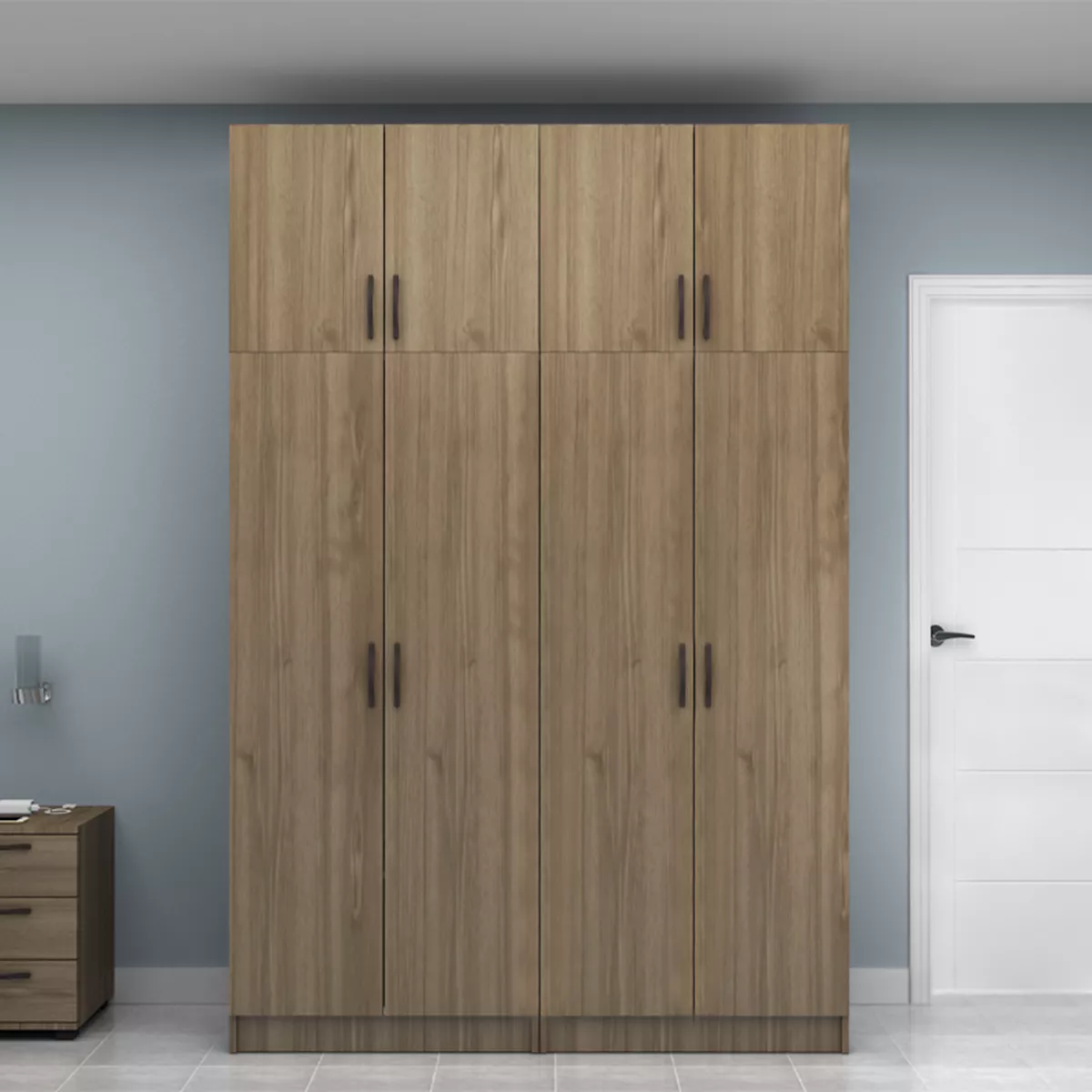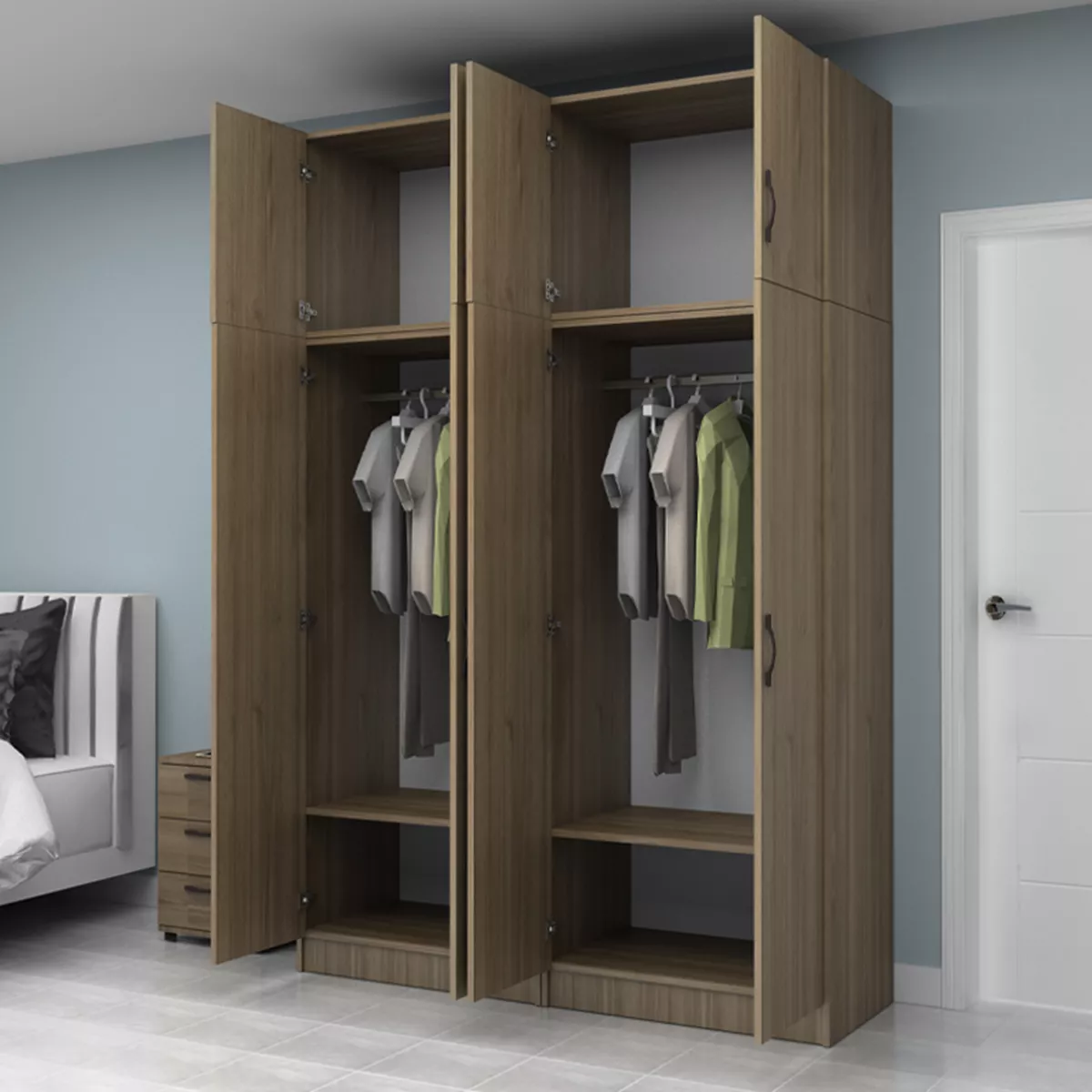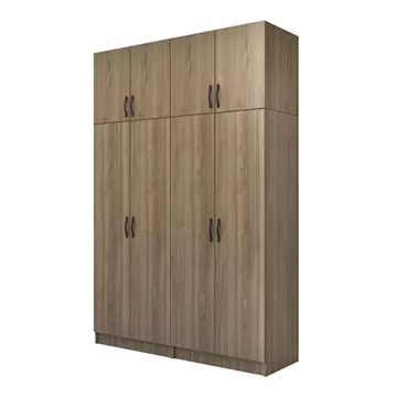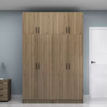 Ντουλάπα ρούχων Vivian Megapap τετράφυλλη με πατάρι χρώμα καρυδί 160x51,8x240εκ.
