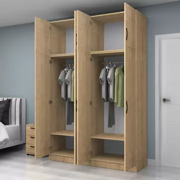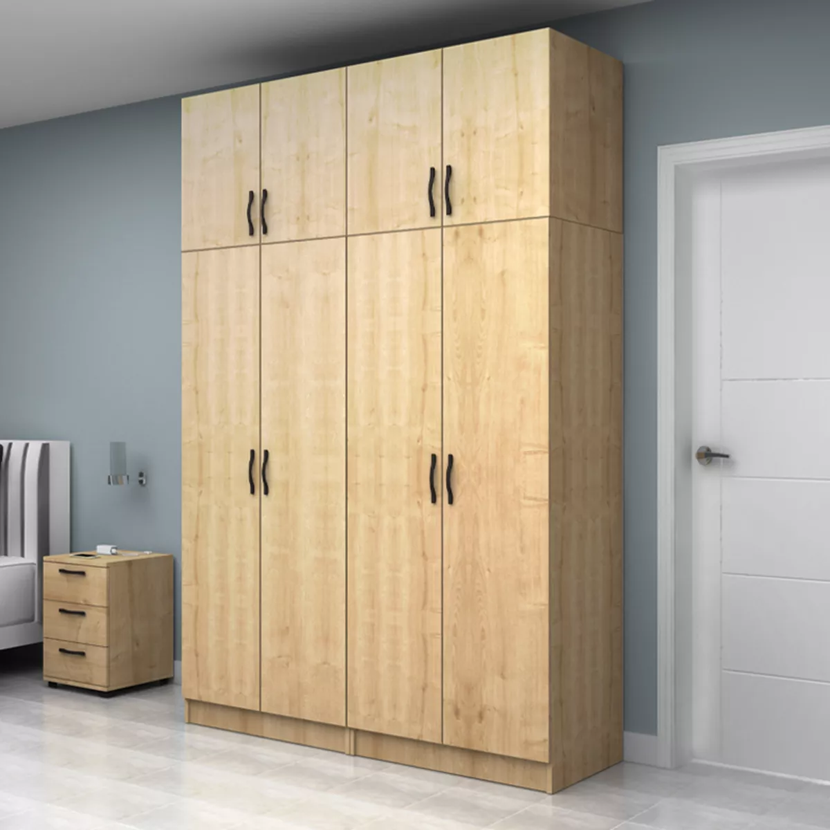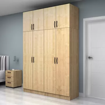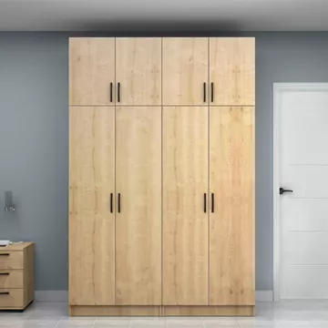 Ντουλάπα ρούχων Vivian Megapap τετράφυλλη με πατάρι χρώμα φυσικό οξιάς 160x51,8x240εκ.