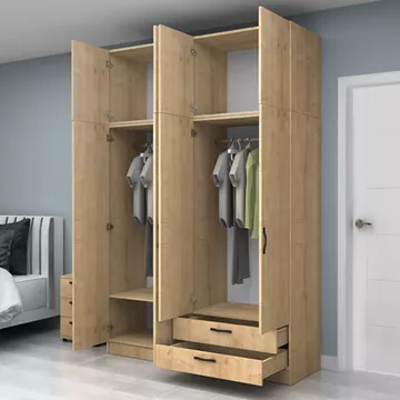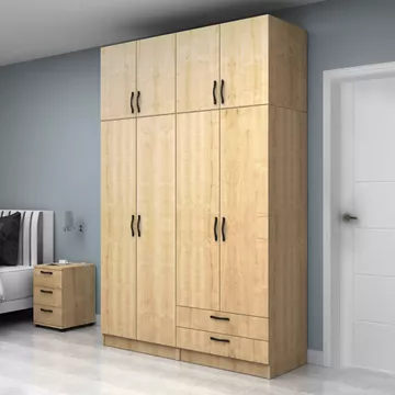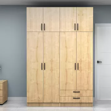 Ντουλάπα ρούχων Vivian Megapap τετράφυλλη με πατάρι και συρτάρια χρώμα φυσικό οξιάς 160x51,8x240εκ.