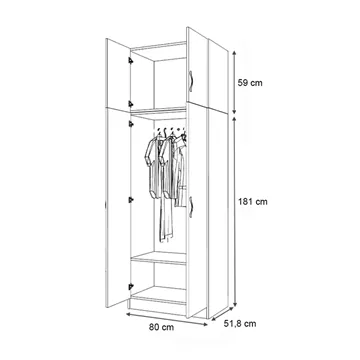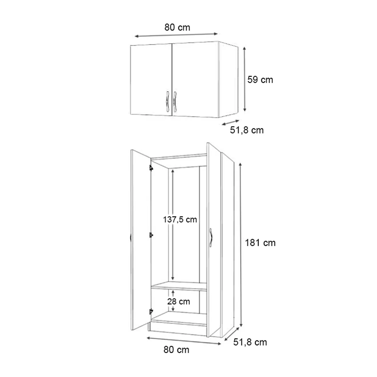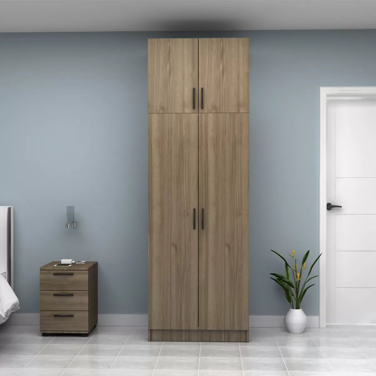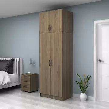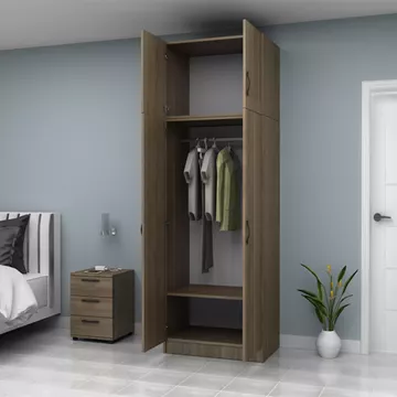 Ντουλάπα ρούχων Vivian Megapap δίφυλλη με πατάρι χρώμα καρυδί 80x51,8x240εκ.