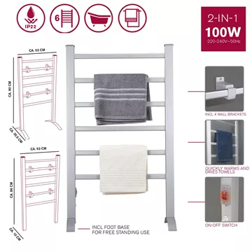 Ηλεκτρική Κρεμάστρα Πετσετών 2-Σε-1 6 Θέσεων Με Τηλεχειριστήριο Λευκό 100W DIRT DEVIL