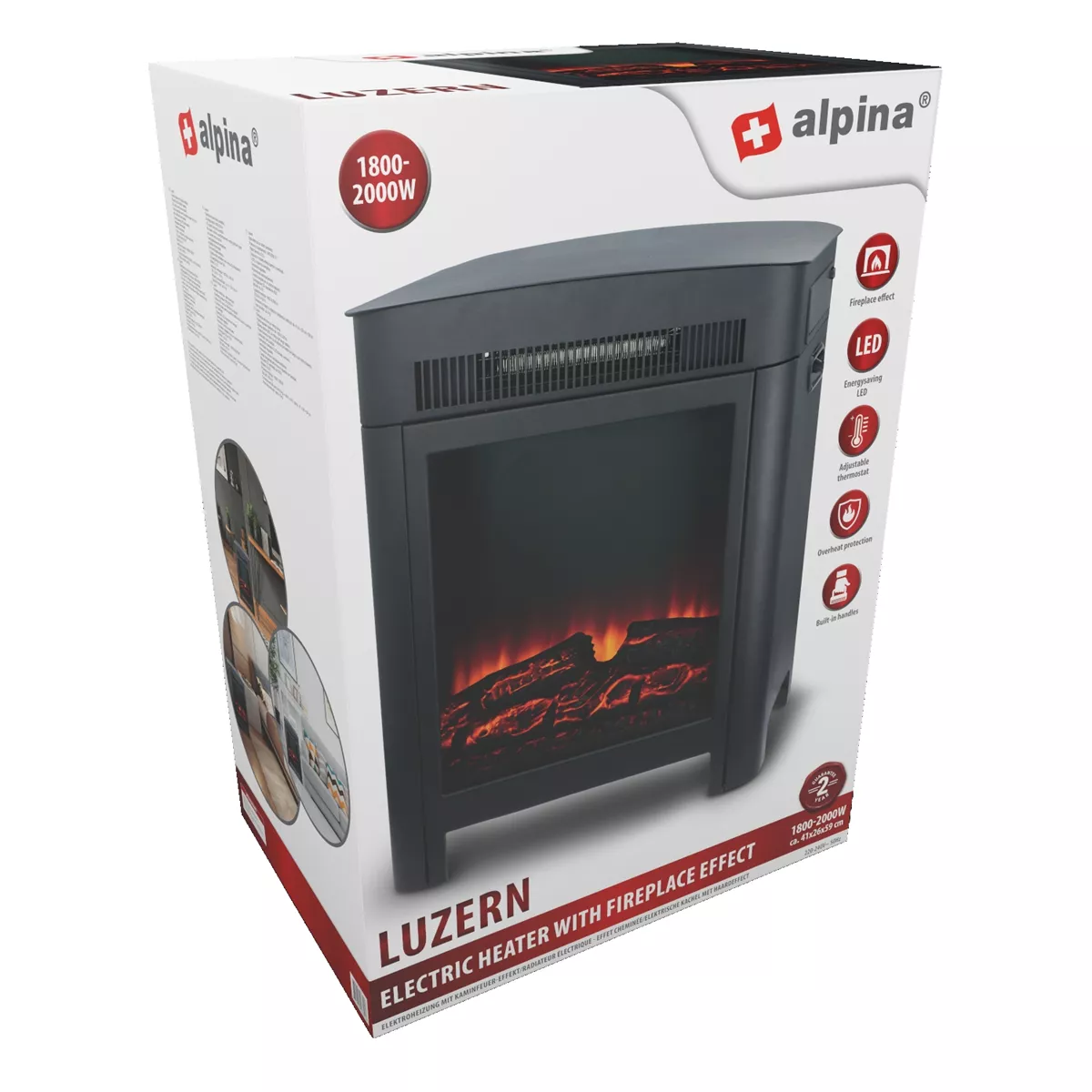 Ηλεκτρικό Τζάκι Επιδαπέδιο LED 1800/2000W Μαύρο 41x26x59cm ALPINA