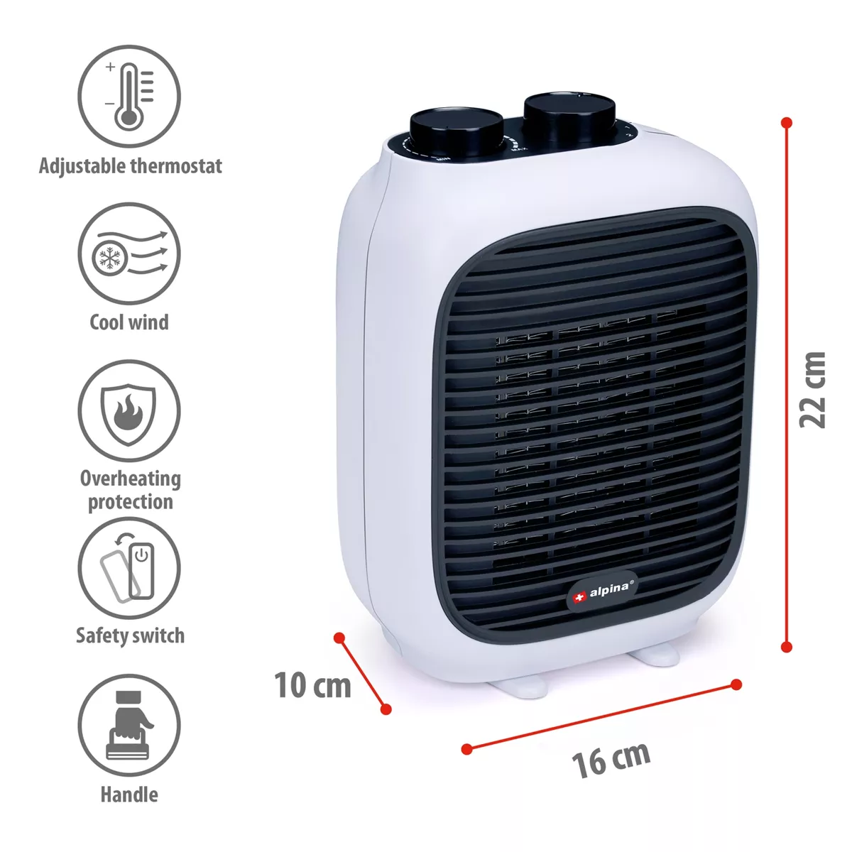Φορητό Αερόθερμο 2-Σε-1 1500W Λευκό/Μαύρο 16x10x22cm ALPINA