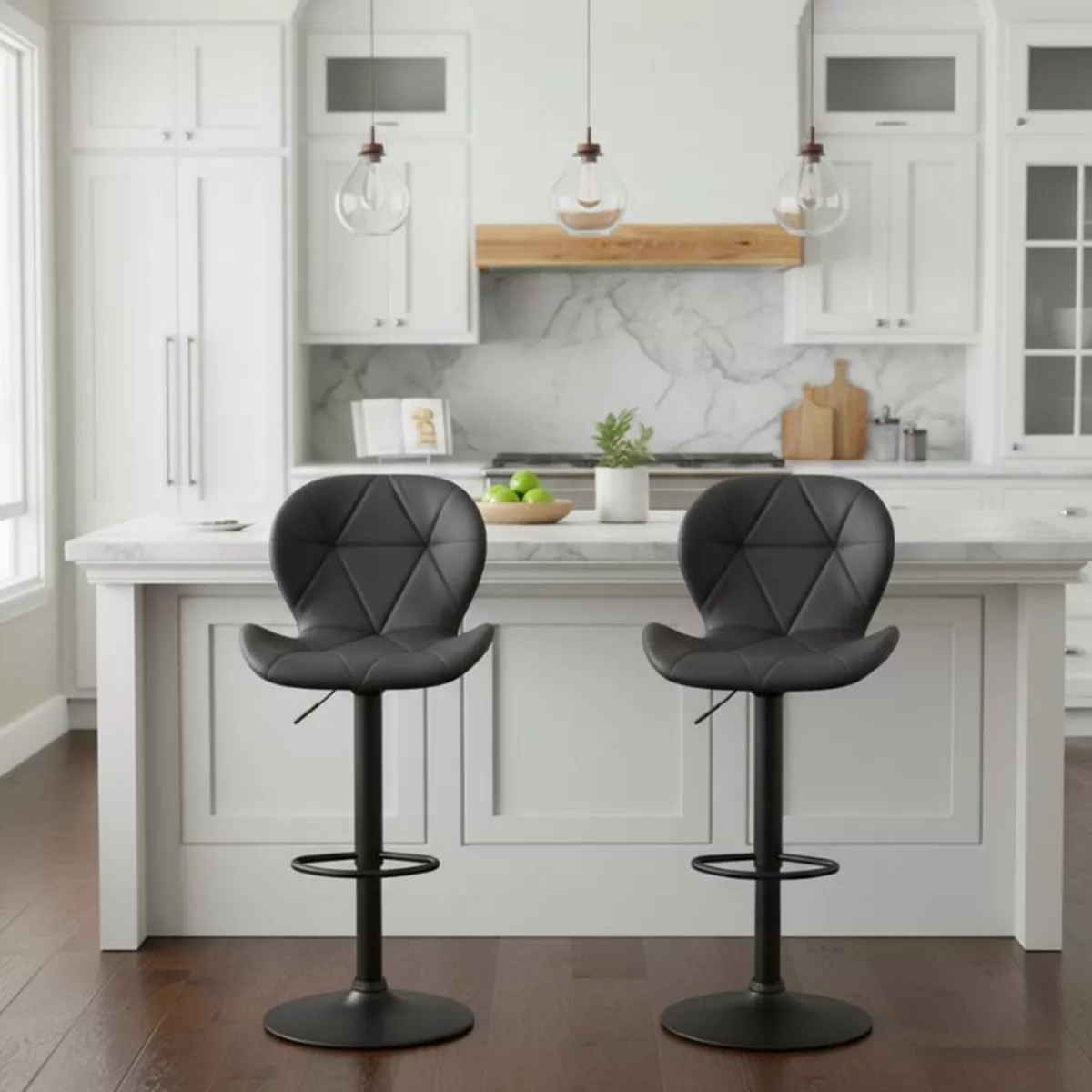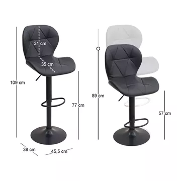 Σκαμπό μπαρ Dolores Megapap με ρυθμιζόμενο ύψος PU μαύρο - βάση μαύρο ματ 45,5x38x89/109εκ.