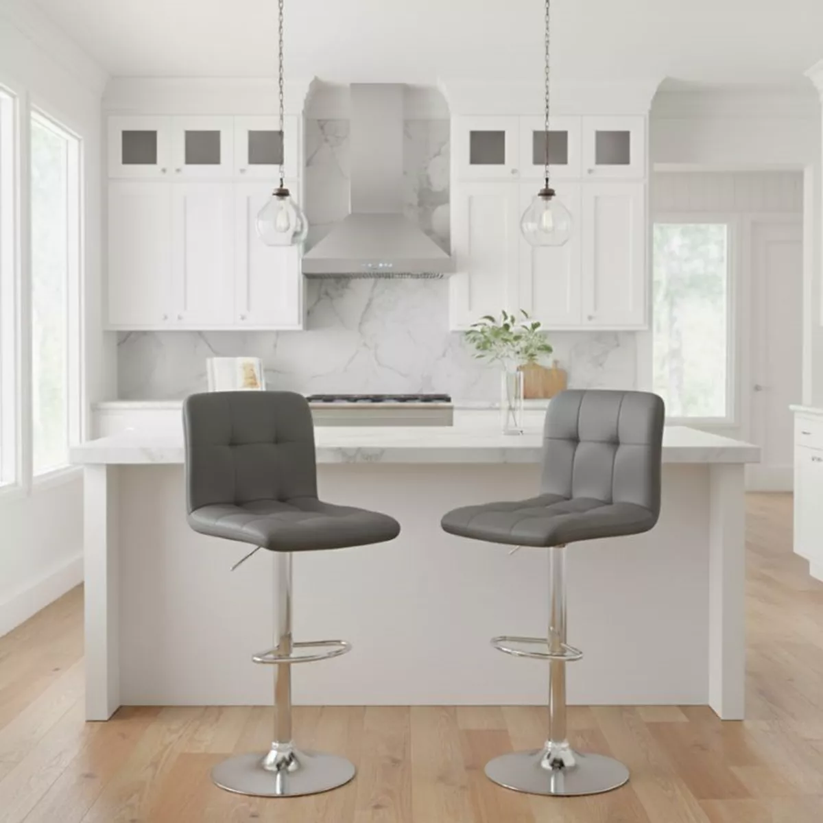 Σκαμπό μπαρ Carmelo Megapap με ρυθμιζόμενο ύψος PU γκρι - βάση χρωμίου 45x42x90/113εκ.