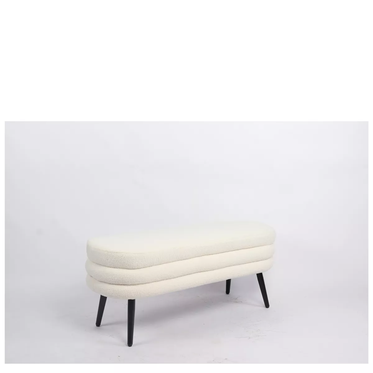 Παγκάκι Ottoman ArteLibre TONDO Λευκό Ύφασμα Teddy/Μέταλλο 42x112x44cm