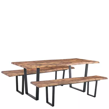 Σετ Τραπεζαρία (2+1) ArteLibre NORTHAM Καρυδί/Μαύρο Μέταλλο/Μοριοσανίδα