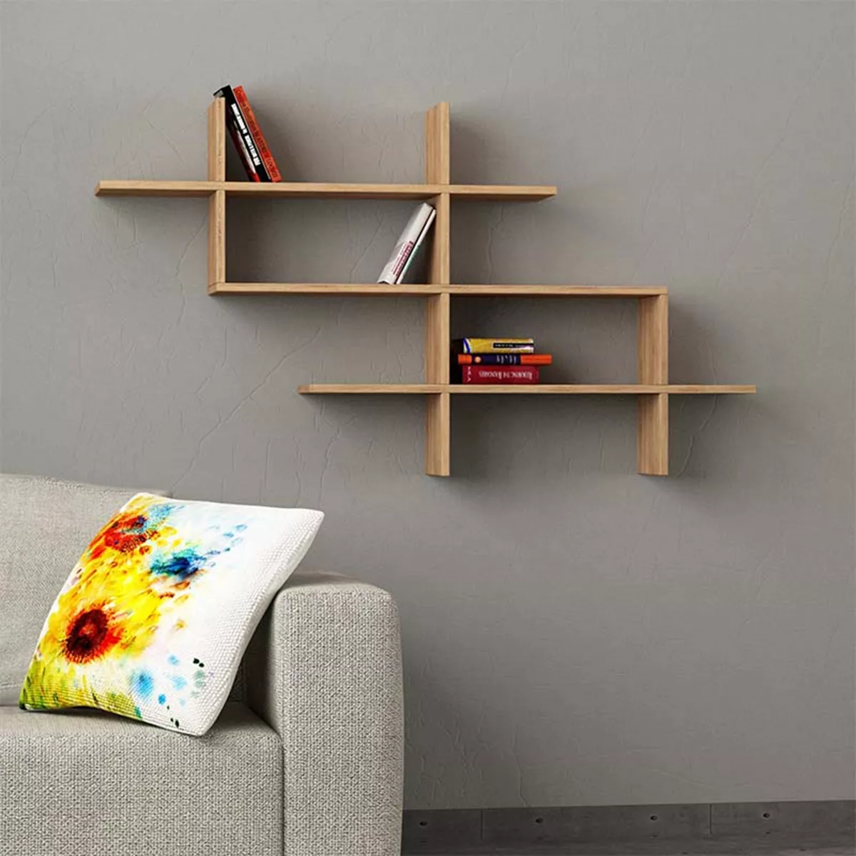 Ραφιέρα τοίχου Halic Megapap μελαμίνης χρώμα φυσικό οξιάς 150x22x82εκ.