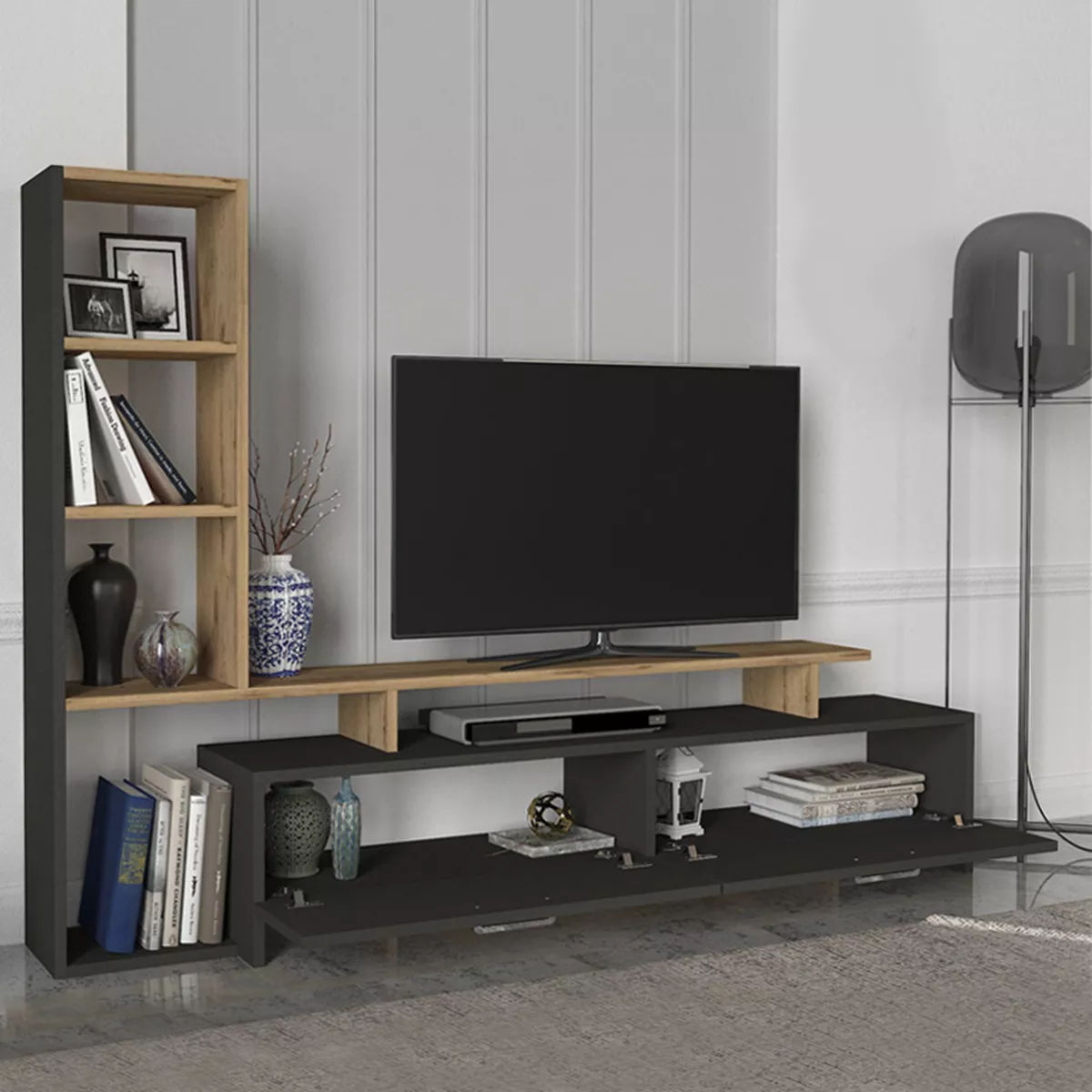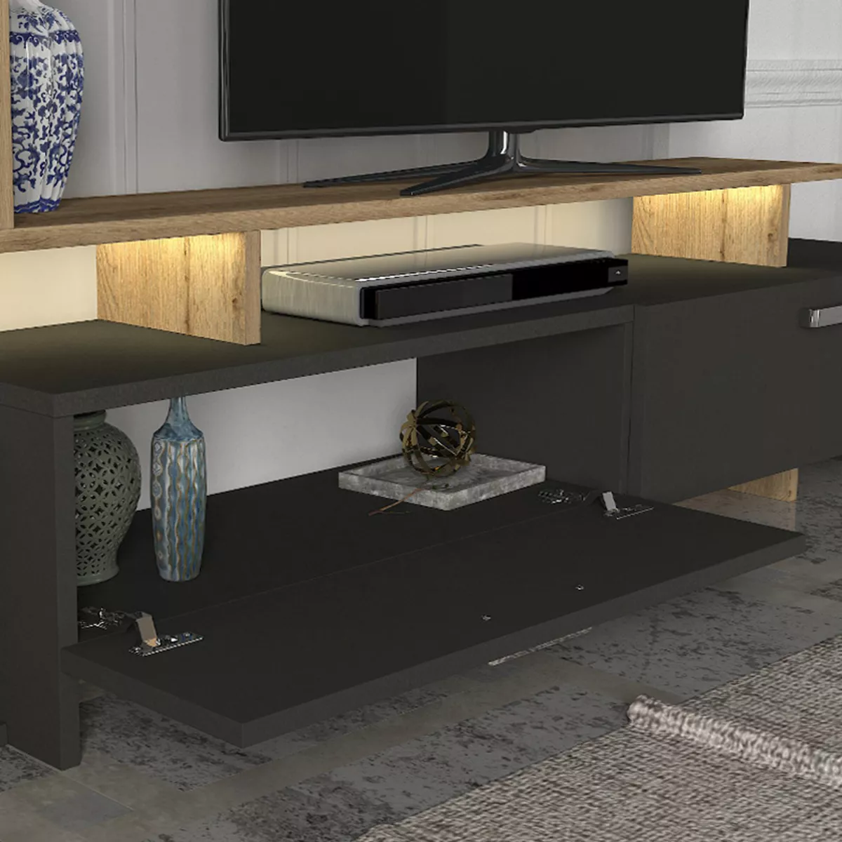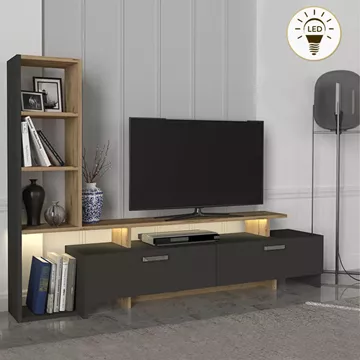 Σύνθεση τηλεόρασης Simal Megapap με LED χρώμα ανθρακί - sepet oak 168,2x31,3x120εκ.