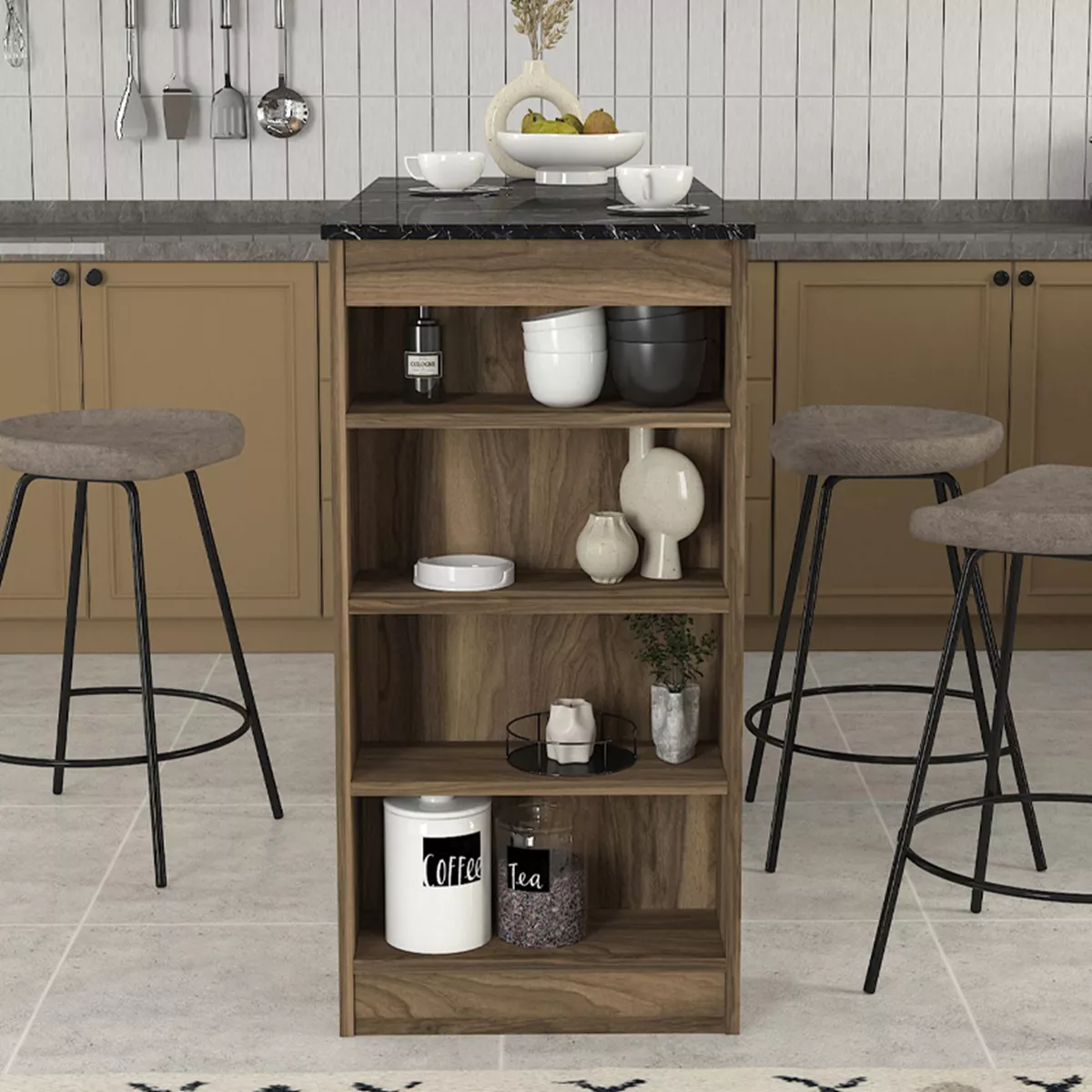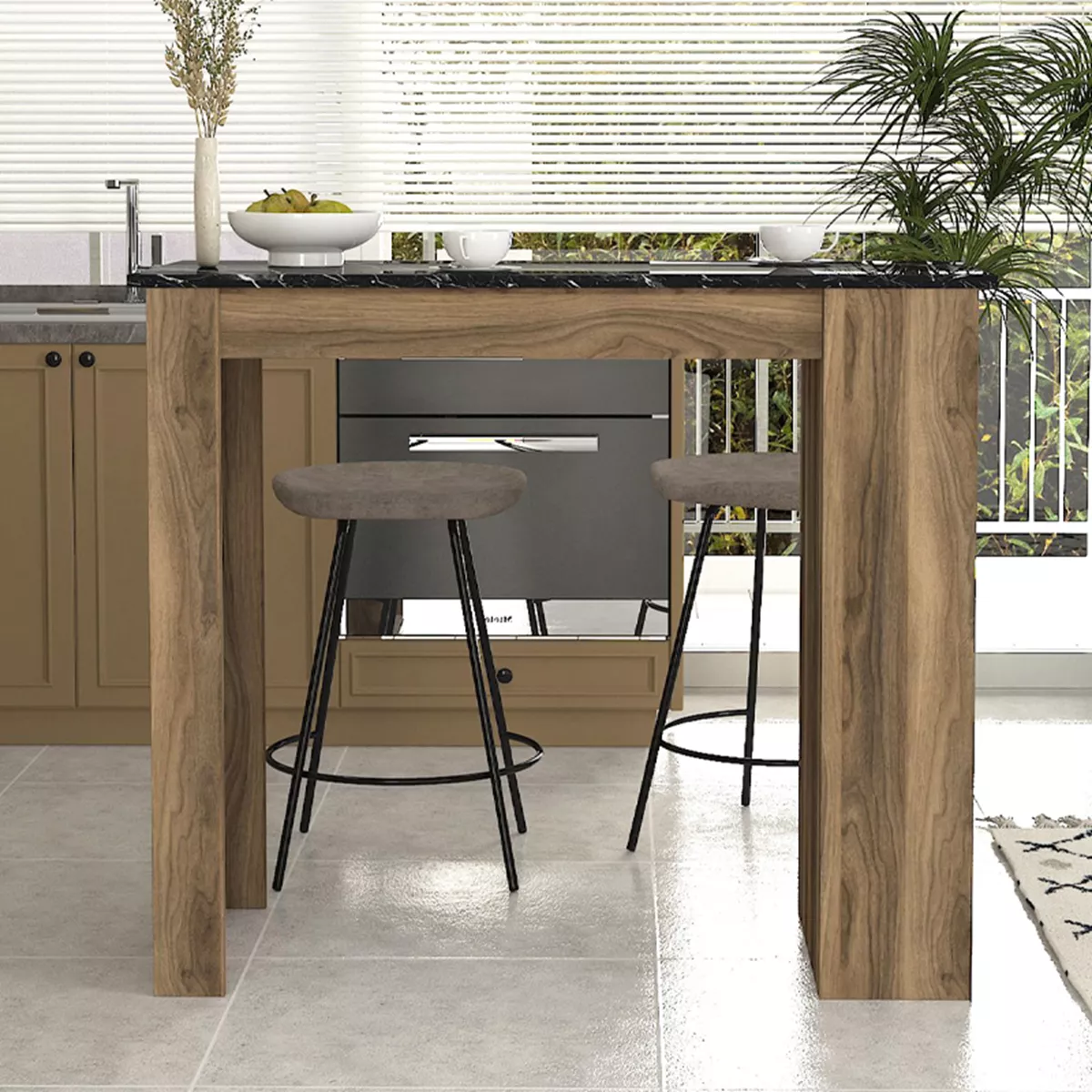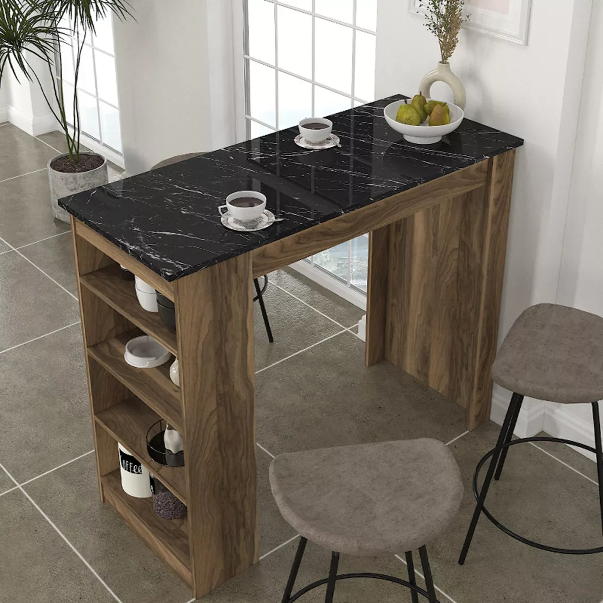 Τραπέζι μπαρ Monaco Megapap χρώμα καρυδί - μαύρο εφέ μαρμάρου 120x51,6x101,8εκ.