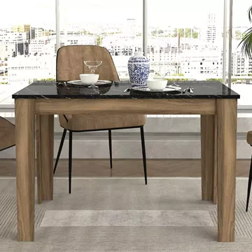 Τραπέζι Darlen Megapap χρώμα καρυδί - μαύρο εφέ μαρμάρου 110x72x74εκ.