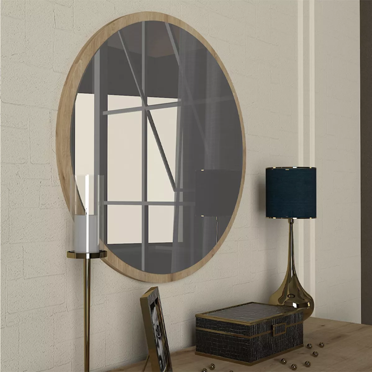 Καθρέπτης τοίχου Glob Μegapap χρώμα sapphire oak 59x2x59εκ.