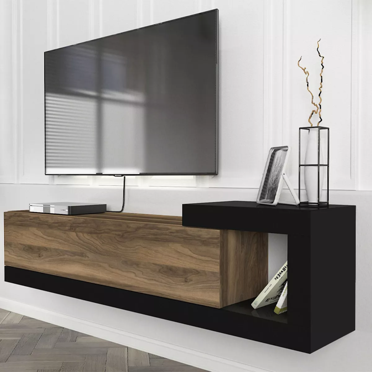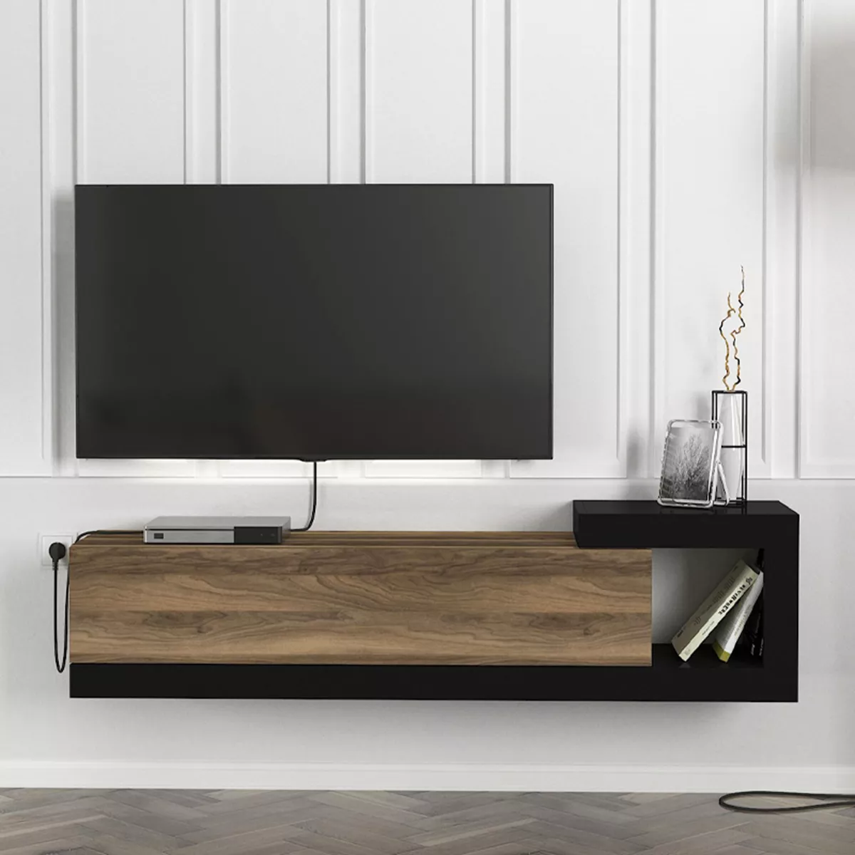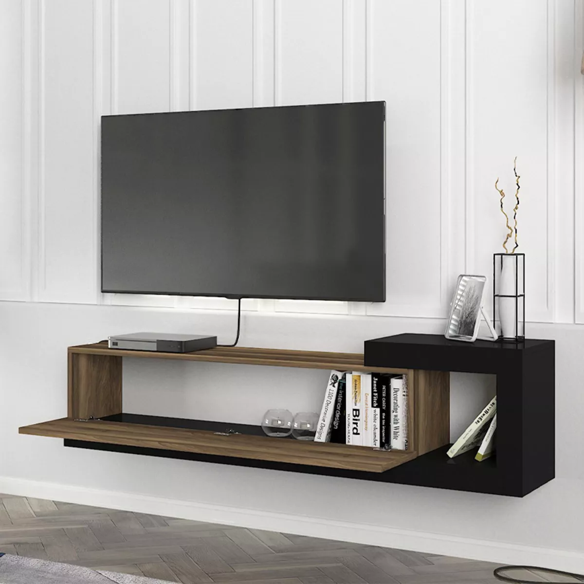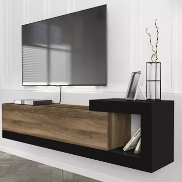 Έπιπλο τηλεόρασης επιτοίχιο Volare Megapap χρώμα καρυδί - μαύρο 150x29,6x38,6εκ.