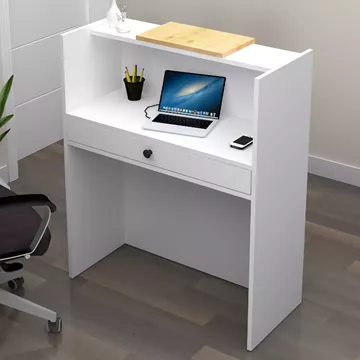 Γραφείο υποδοχής - reception Mezzo Megapap χρώμα λευκό - φυσικό οξιάς 90x40x110εκ.