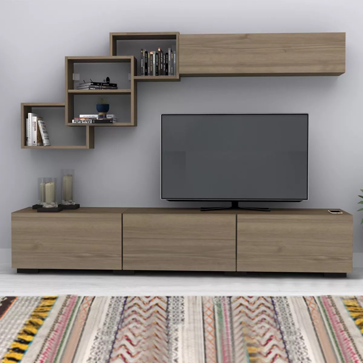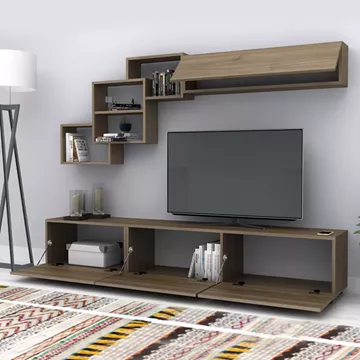 Σύνθεση τηλεόρασης Free Megapap χρώμα καρυδί 210x35x38εκ.