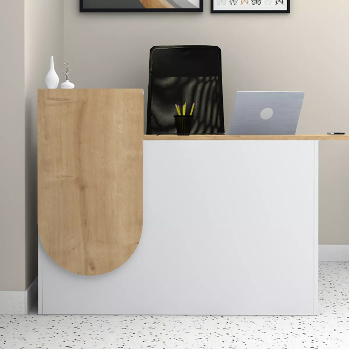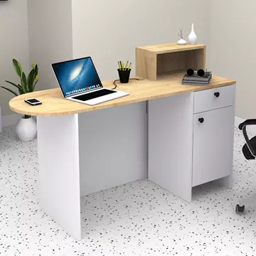Γραφείο υποδοχής - reception Rezio Megapap χρώμα λευκό - φυσικό οξιάς 140x50x101,8εκ.