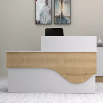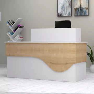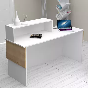 Γραφείο υποδοχής - reception Dustin Megapap χρώμα λευκό - φυσικό οξιάς 160x60x101,8εκ.