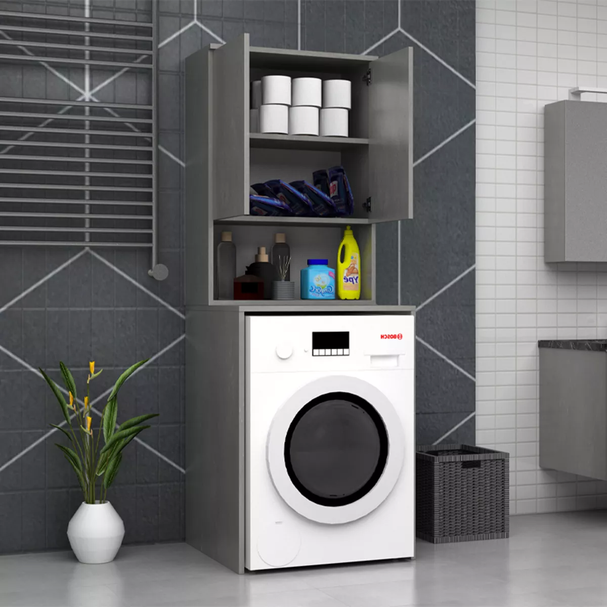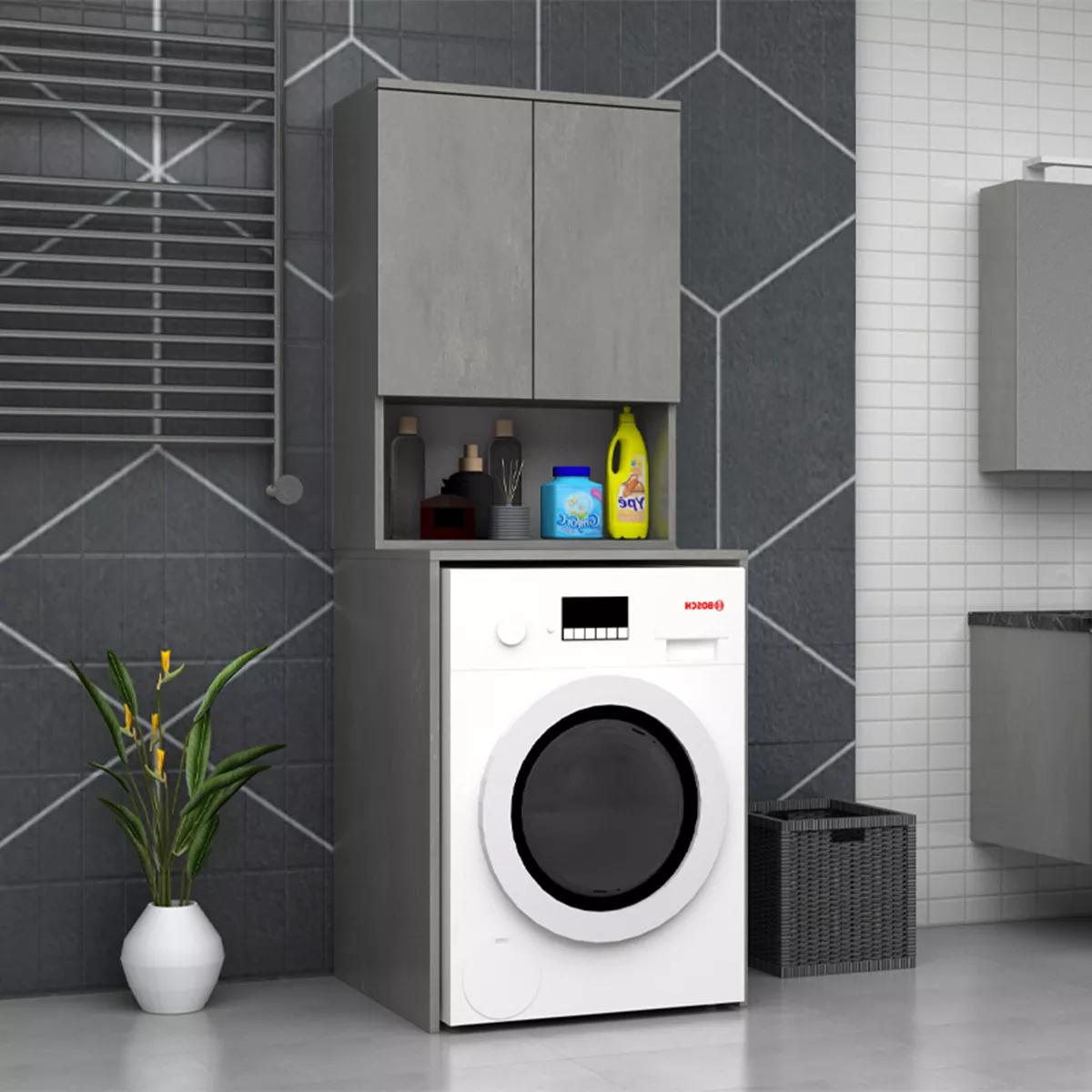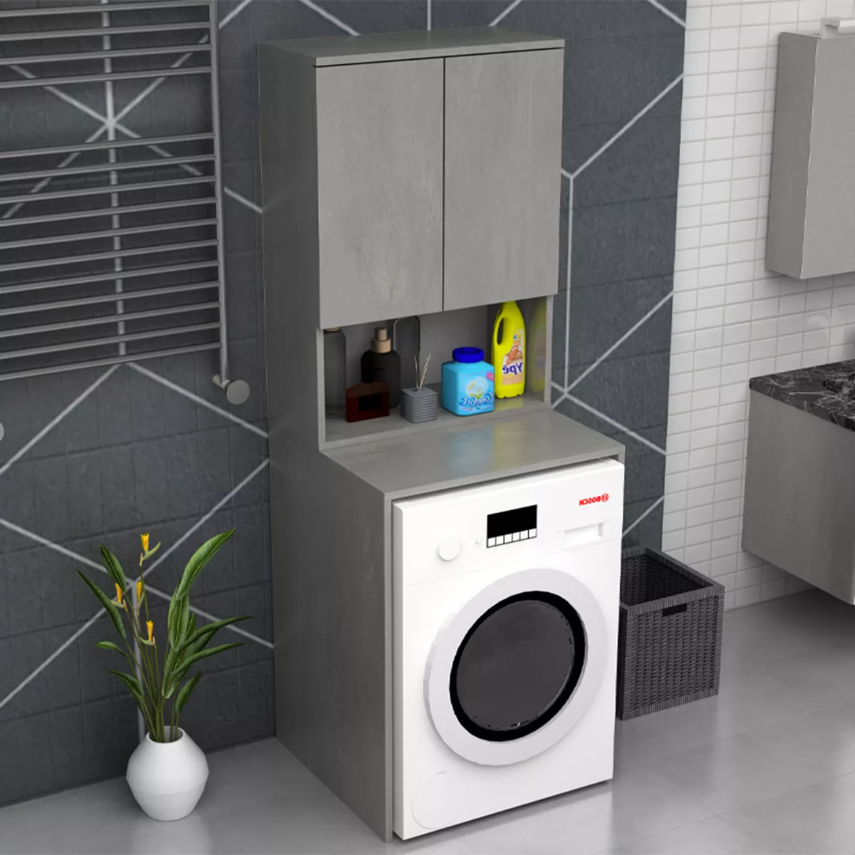 Έπιπλο πλυντηρίου Cozen Megapap χρώμα γκρι σκυροδέματος 65x60x178εκ.