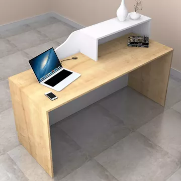 Γραφείο υποδοχής - reception Lione Megapap χρώμα φυσικό οξιάς - λευκό 160x60x100εκ.