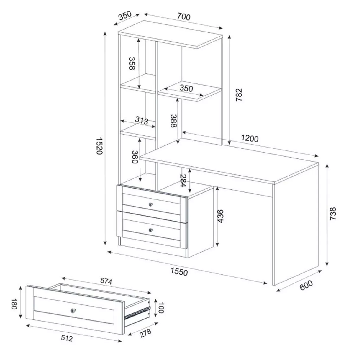 Γραφείο εργασίας Mantra Megapap χρώμα λευκό 150x60x152εκ.
