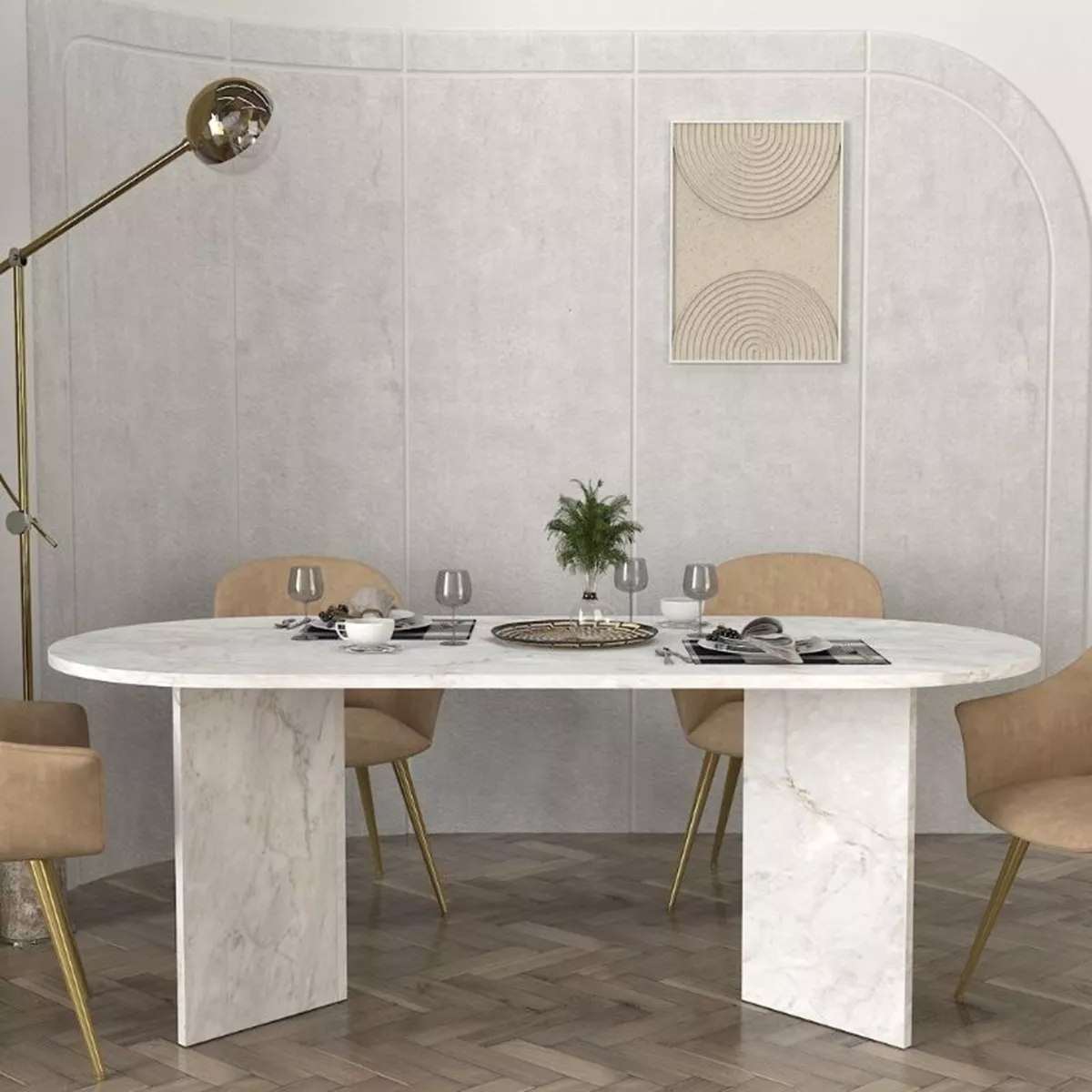 Τραπέζι Cortado Megapap χρώμα λευκό εφέ μαρμάρου 200x90x74εκ.