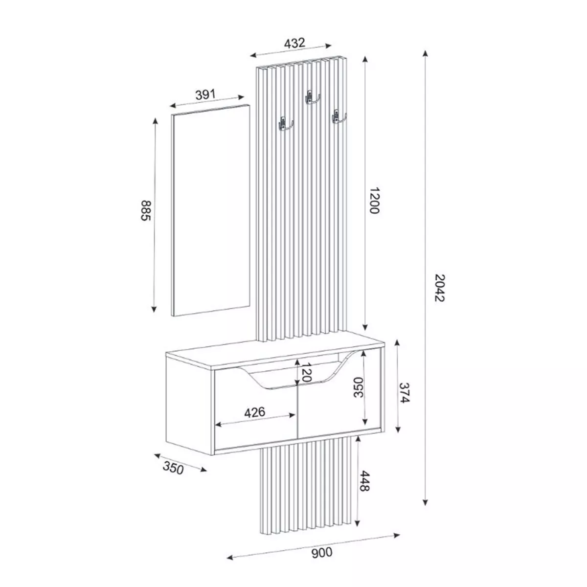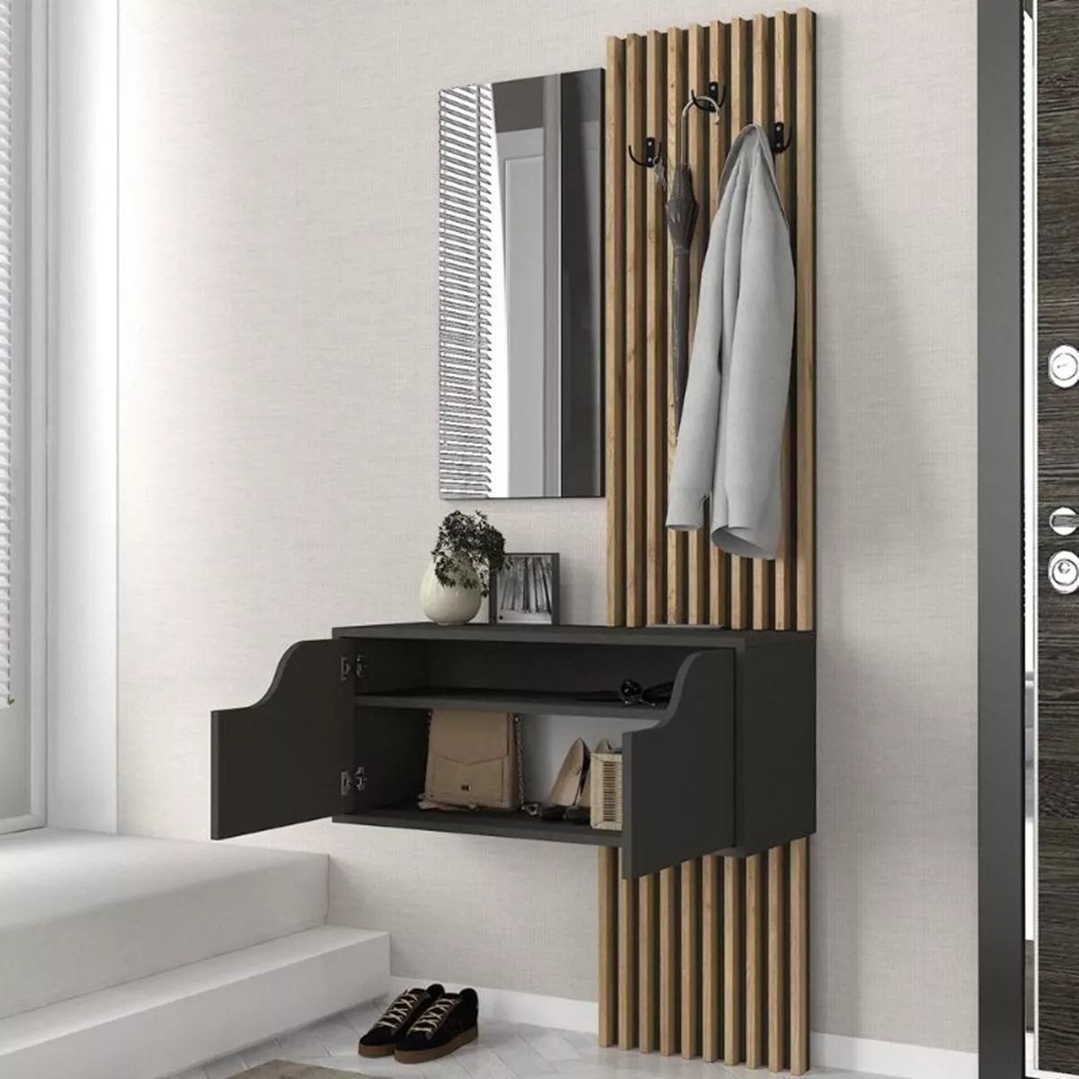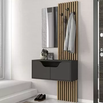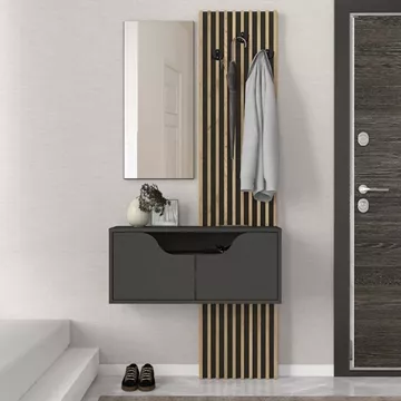 Έπιπλο εισόδου Naro Megapap χρώμα ανθρακί - sepet oak 90x35x204,2εκ.