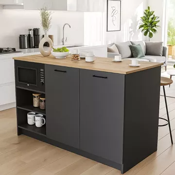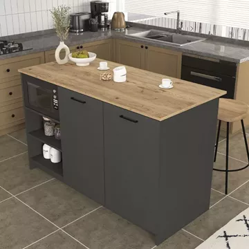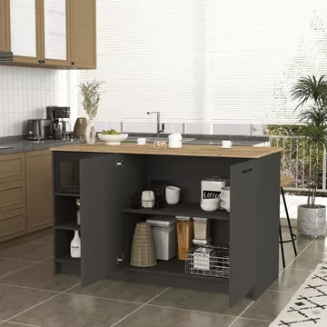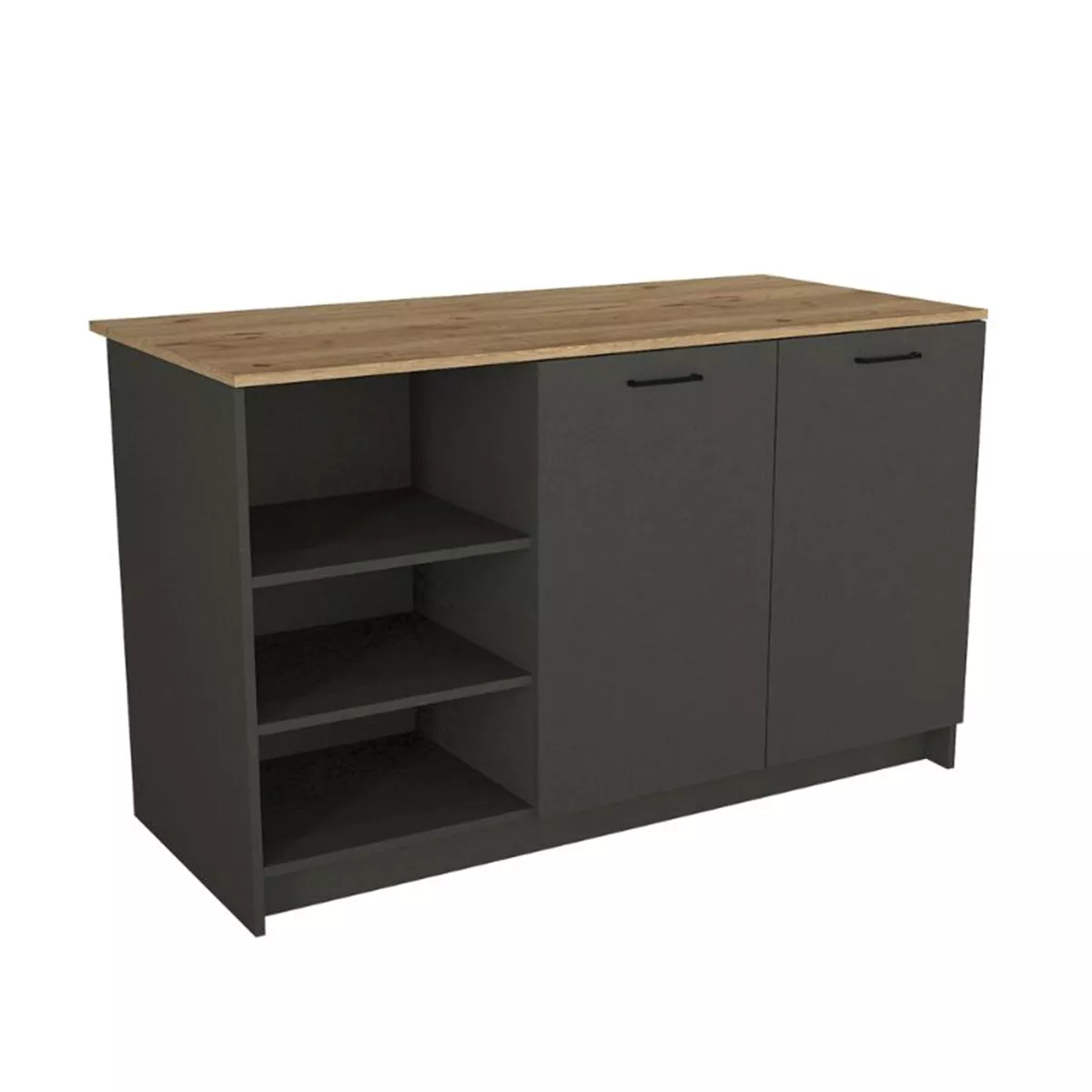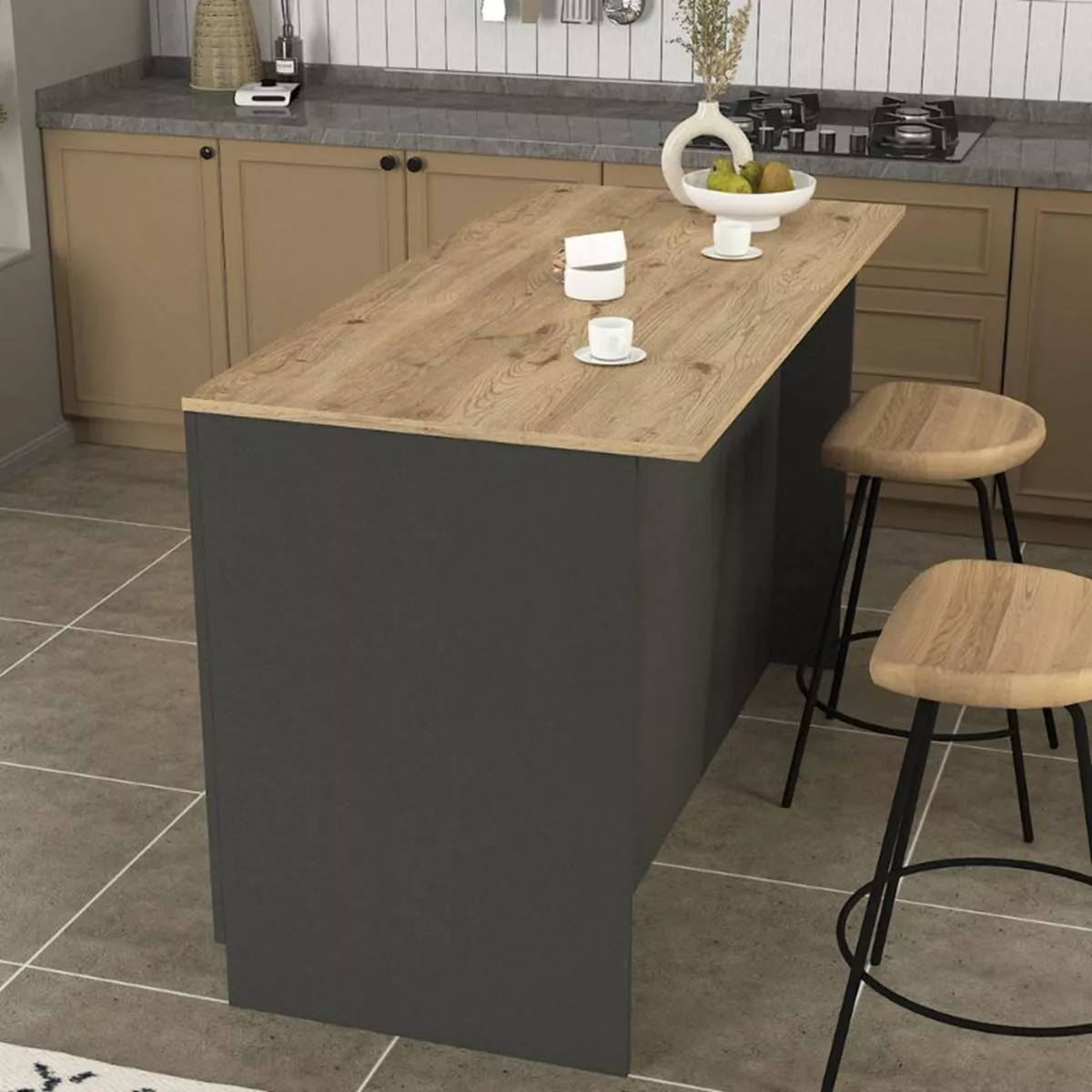 Τραπέζι - Πάγκος κουζίνας Peres Megapap χρώμα ανθρακί - sepet oak 150x70x91,8εκ.