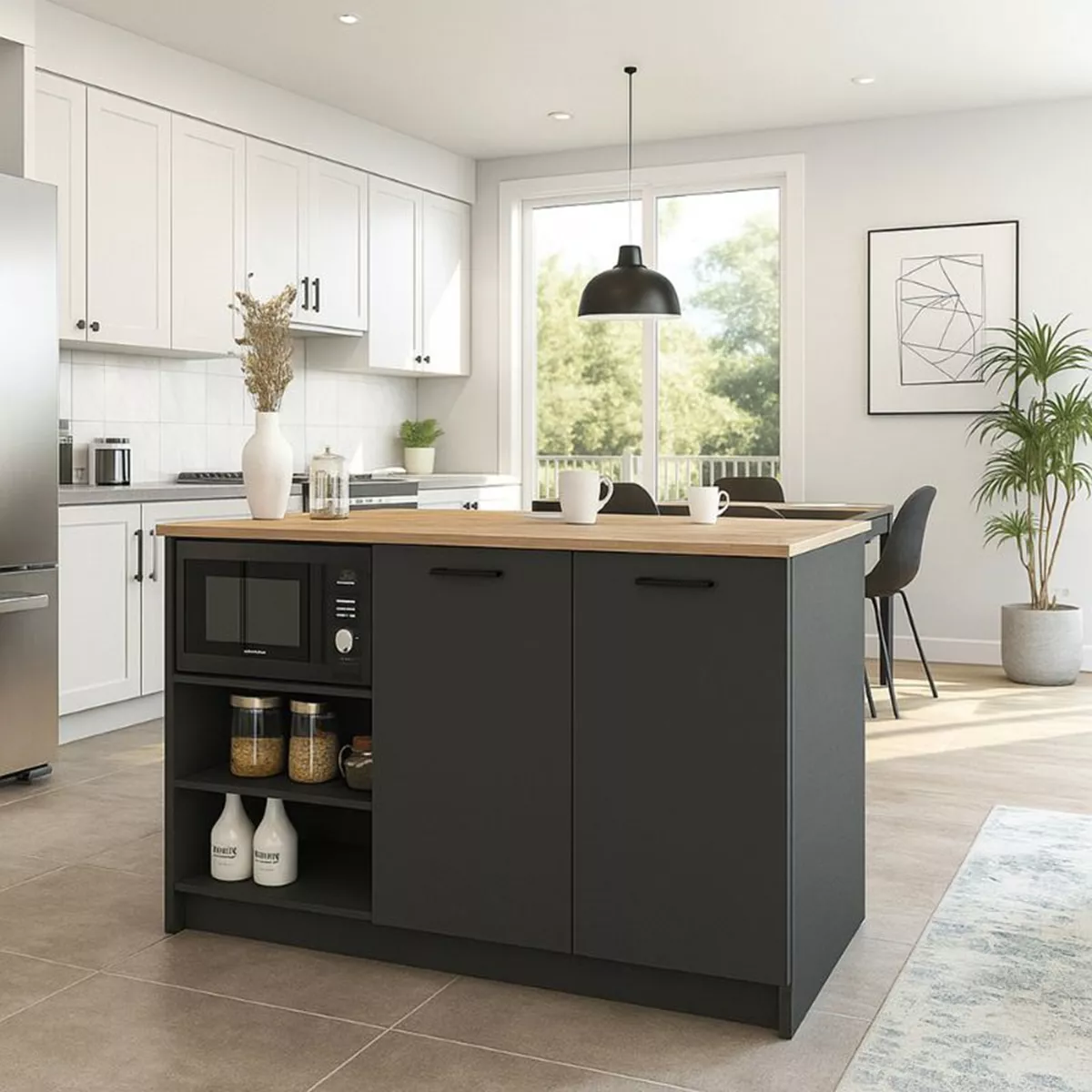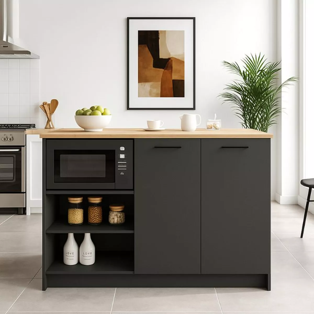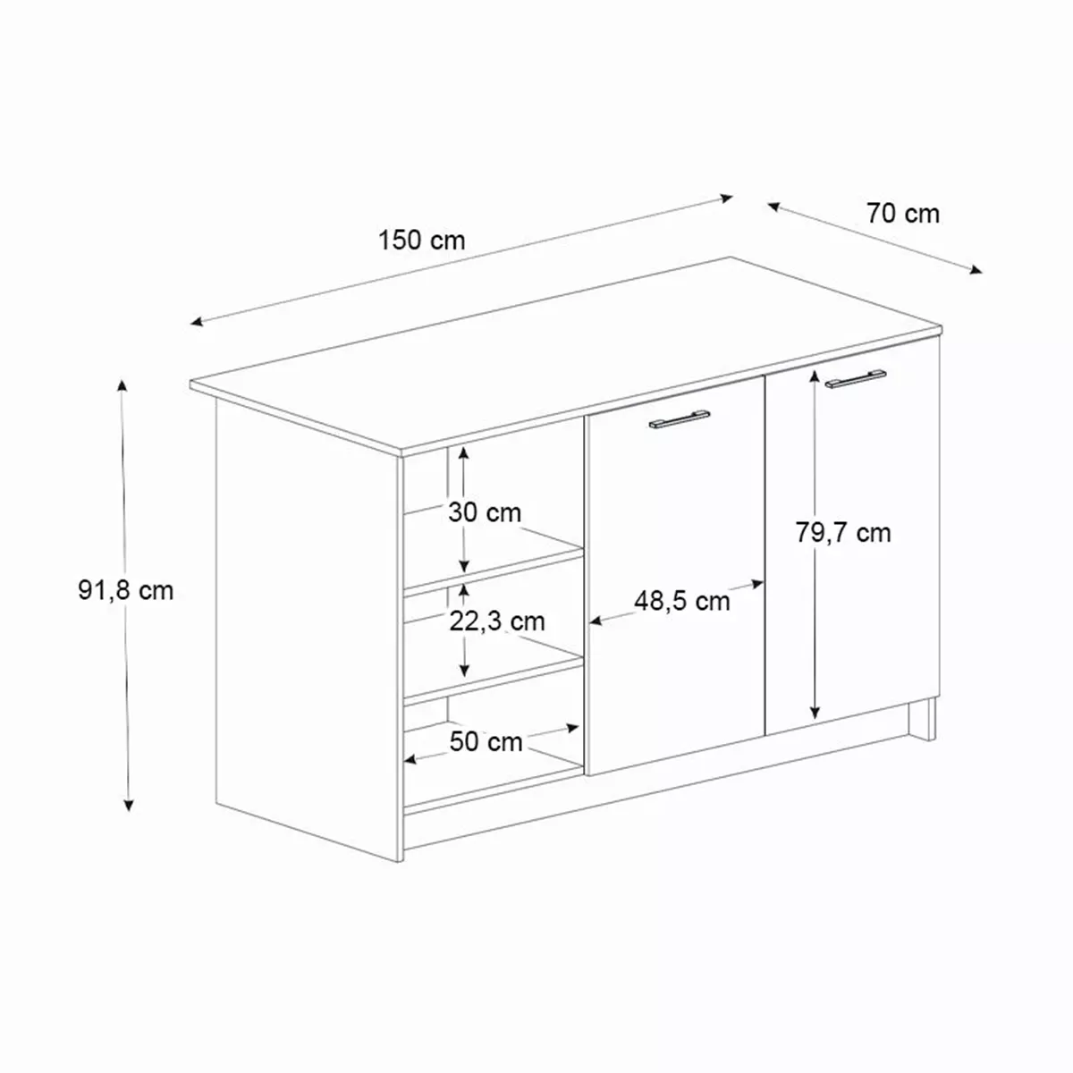 Τραπέζι - Πάγκος κουζίνας Peres Megapap χρώμα ανθρακί - sepet oak 150x70x91,8εκ.
