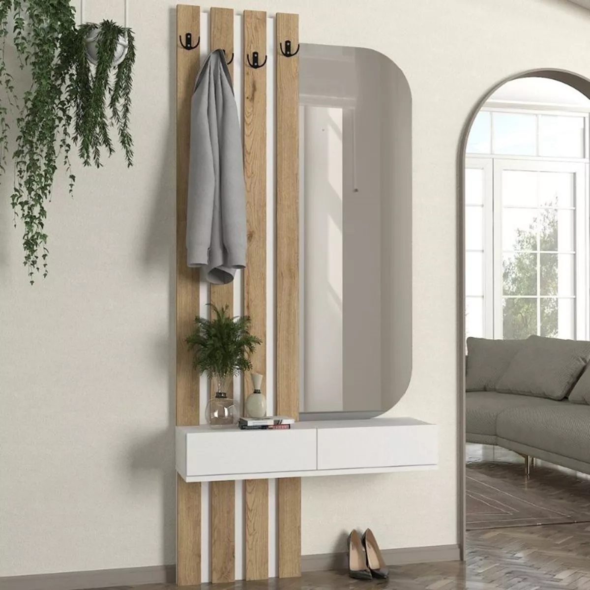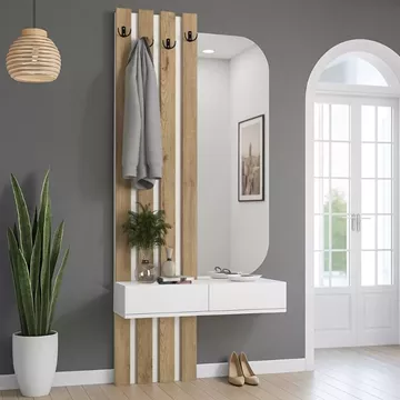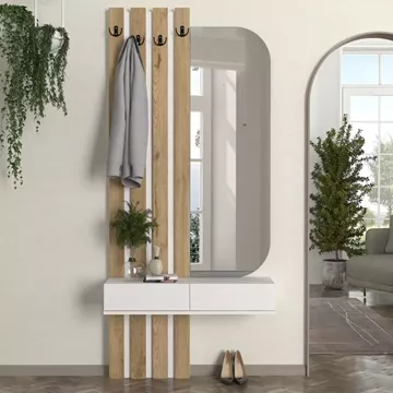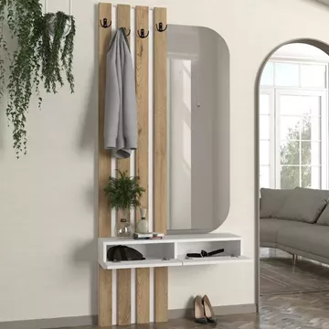 Έπιπλο εισόδου Reyas Megapap χρώμα λευκό - sepet oak 90x27x205,6εκ.