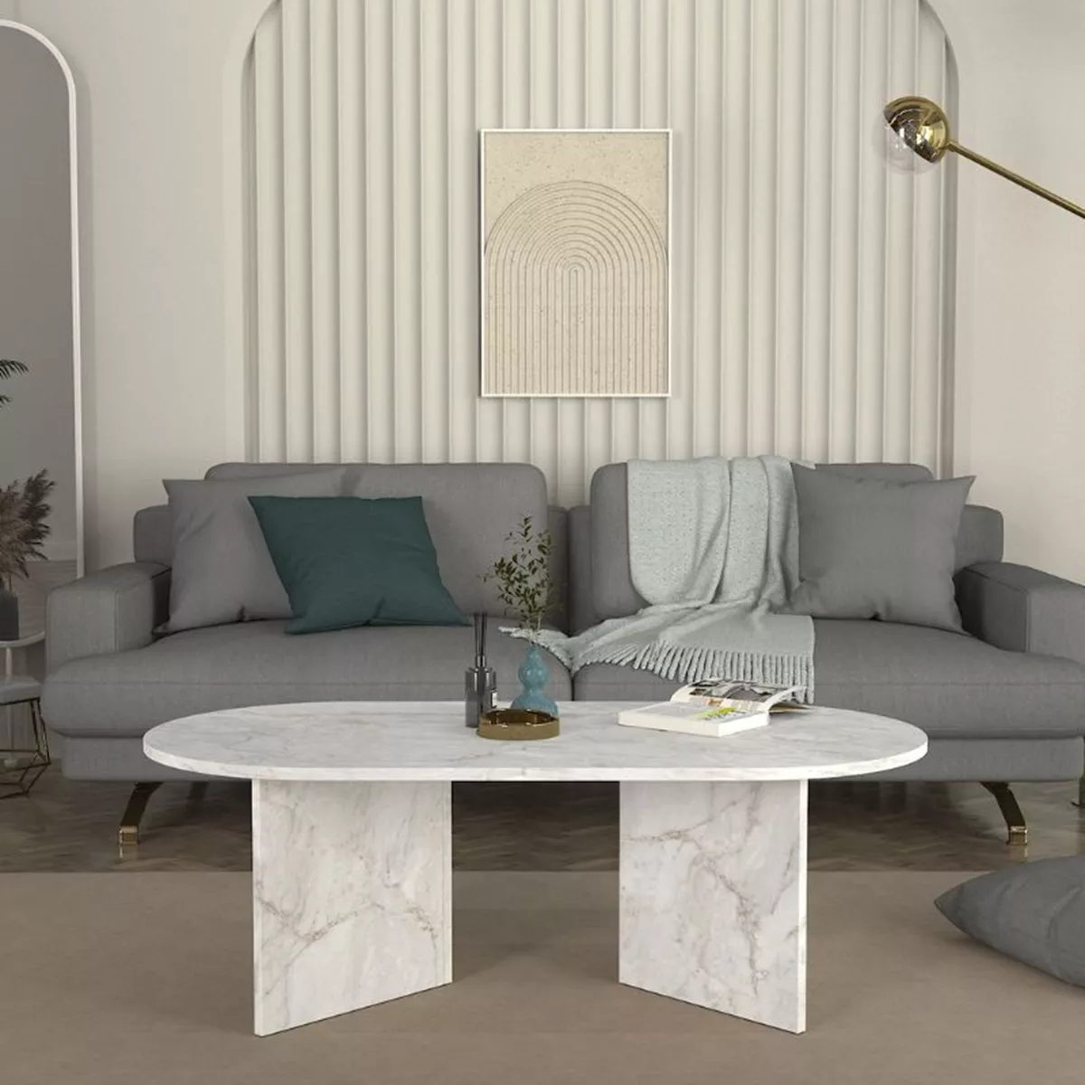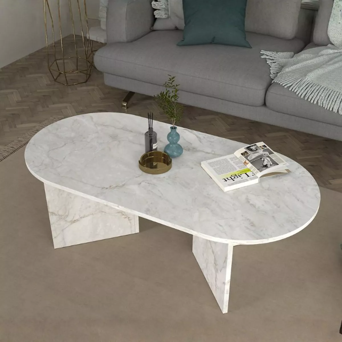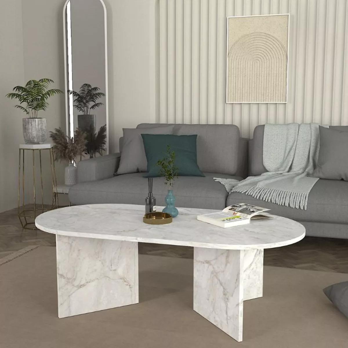 Τραπεζάκι σαλονιού Cortado Megapap χρώμα λευκό εφέ μαρμάρου 120x60x39,6εκ.