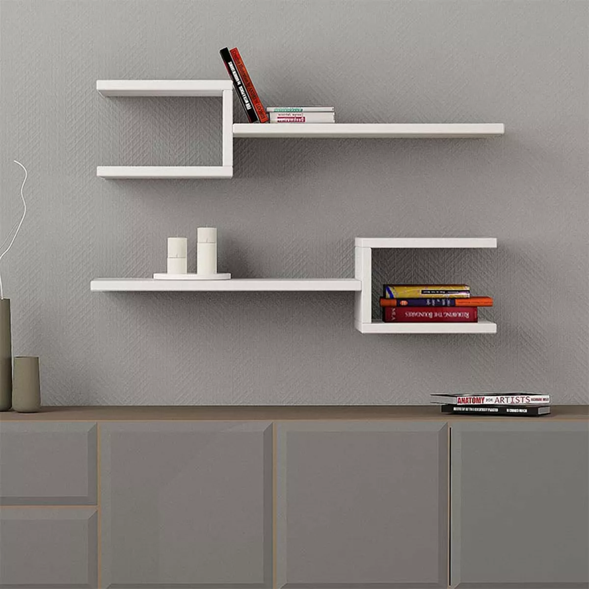 Ραφιέρα τοίχου Fork Megapap 2 τεμαχίων από μελαμίνη χρώμα λευκό 75x19,5x18εκ.