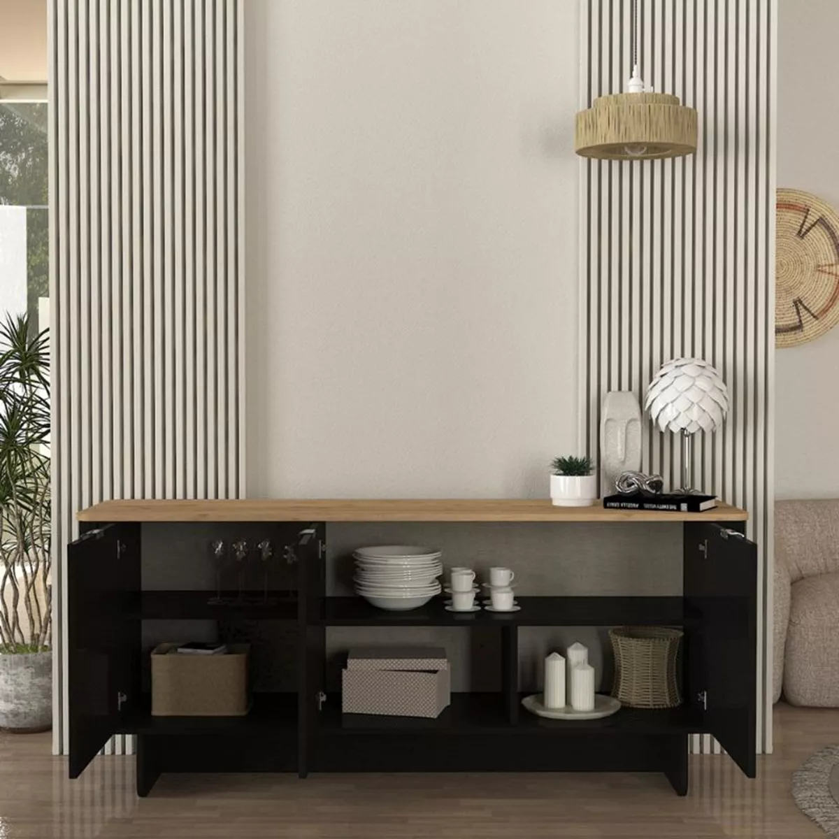Μπουφές Bohema Megapap χρώμα μαύρο - sepet oak 180x47x76,6εκ.