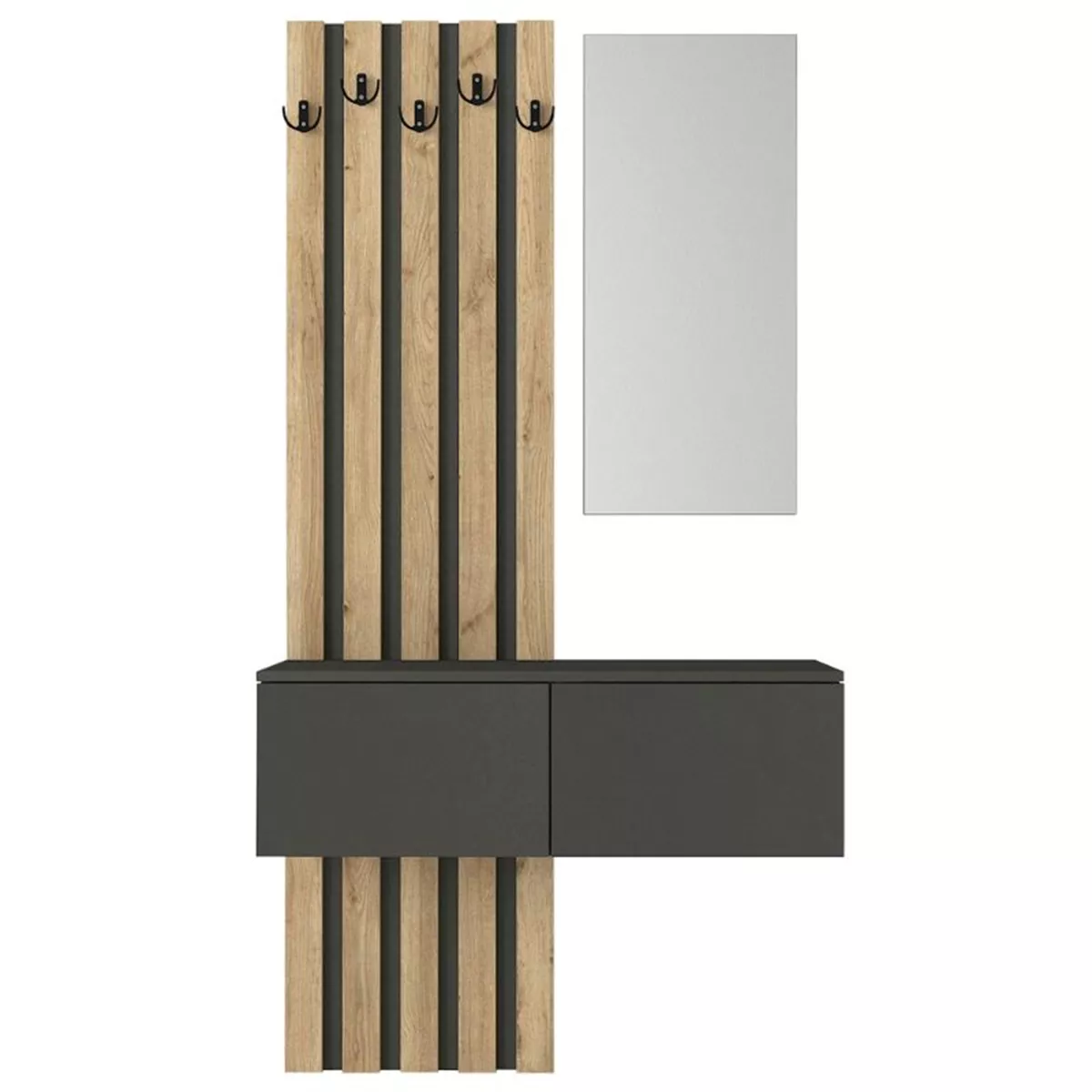 Έπιπλο εισόδου Kanso Megapap χρώμα ανθρακί - sepet oak 100x35x196,7εκ.