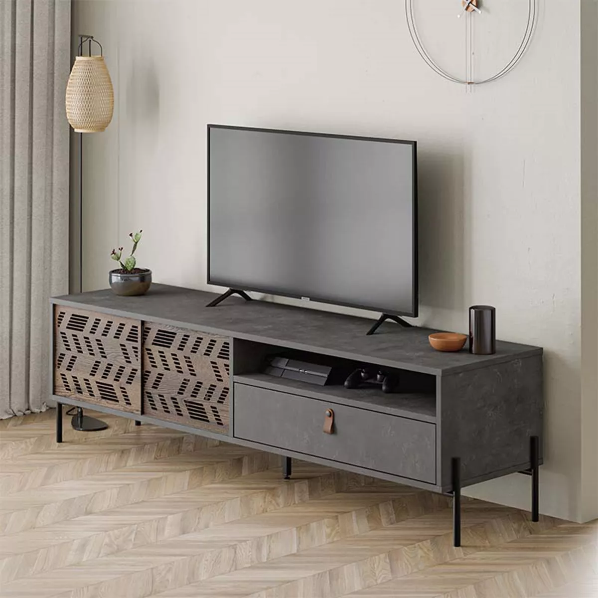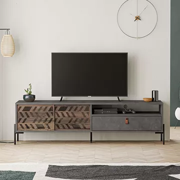 Έπιπλο τηλεόρασης Dionysos Megapap από μελαμίνη χρώμα γκρι ρετρό 170x45x48,6εκ.
