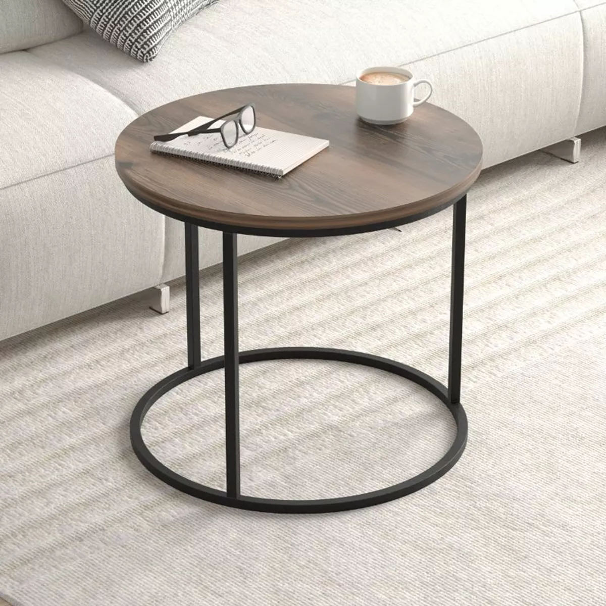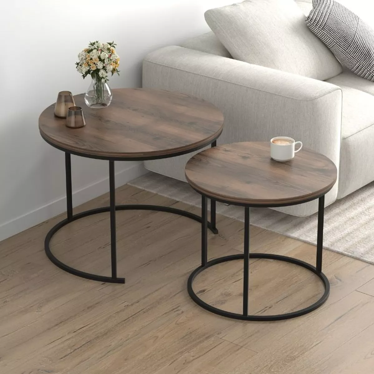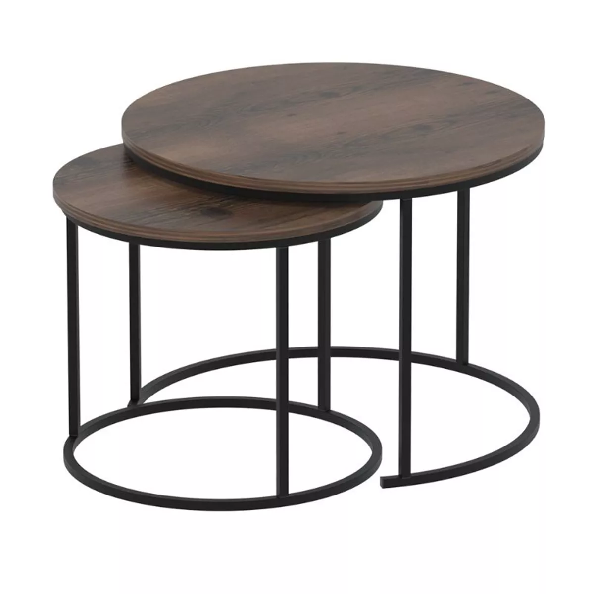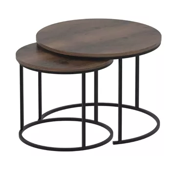 Τραπεζάκι σαλονιού σετ 2 τμχ Hilal Megapap χρώμα καπνιστή καρυδιά Ø66x49,5εκ.