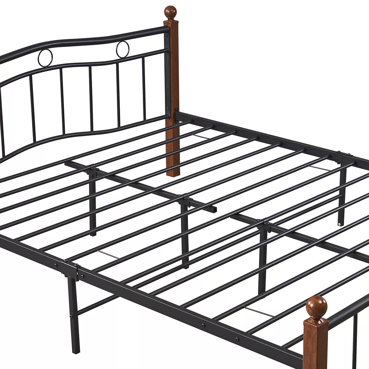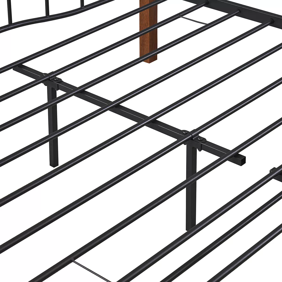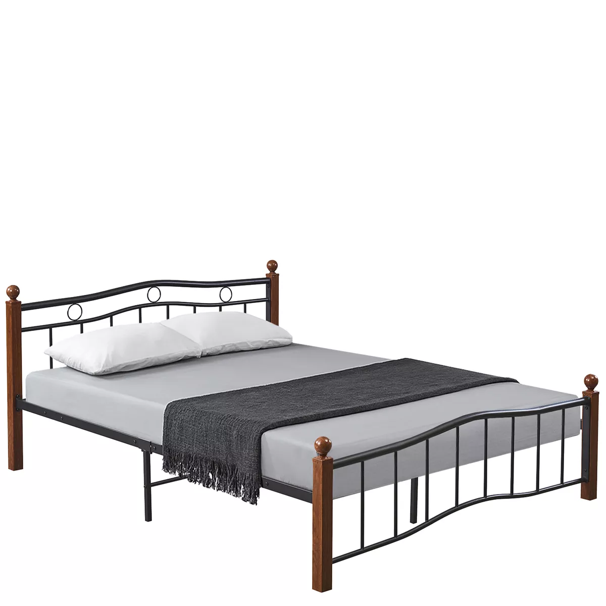 Κρεβάτι Διπλό ArteLibre ARROWHEAD Μαύρο/Καρυδί Μέταλλο Για Στρώμα 150x200cm